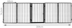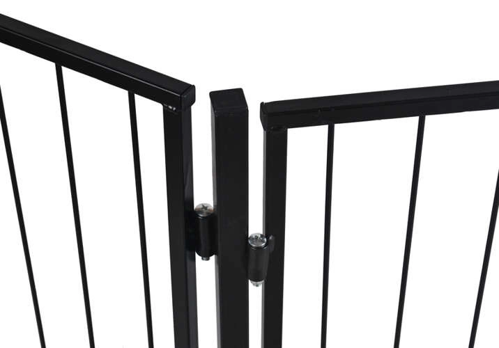 Práctica barrera de seguridad para chimenea que protege a niños y mascotas del contacto con superficies calientes y del fuego abierto. Gracias a sus cinco segmentos con bisagras, se adapta fácilmente al espacio, cuenta con fácil montaje a la pared, bloqueo de seguridad contra aperturas accidentales y es compatible con la mayoría de las chimeneas. Estructura robusta de acero en color negro, con un ancho total de 304 cm y una altura de 74,5 cm, que proporciona una protección fiable en el salón.