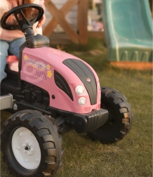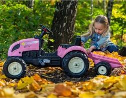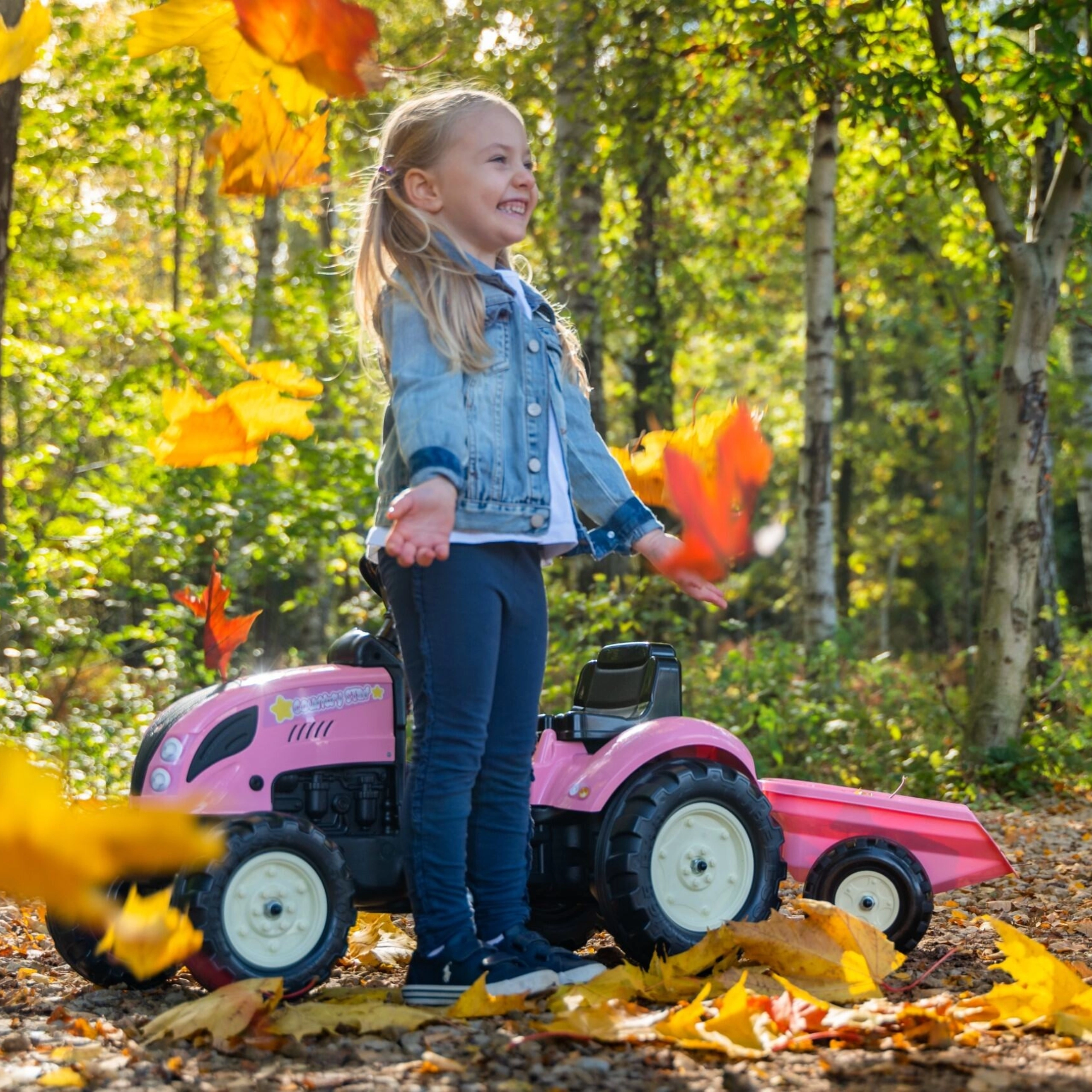 El tractor infantil FALK Country Star encantará a todos los pequeños conductores que aman moverse y jugar al aire libre. Su estructura de plástico resistente garantiza una larga vida útil y un uso seguro, mientras que la transmisión por cadena al eje trasero proporciona una conducción suave. Gracias al remolque desmontable, los niños pueden transportar juguetes o pequeños objetos y disfrutar de una experiencia de conducción realista.