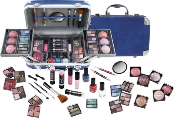 El neceser compacto y estiloso ZMILE Travel Blue en acabado azul y plateado ofrece todo lo que necesitas para un maquillaje natural o llamativo. Gracias a sus resistentes esquinas metálicas y al asa práctica, es ideal para viajar, mientras que el espejo integrado permite maquillarte cómodamente en cualquier lugar. La amplia gama de tonos para ojos, labios y rostro te brinda posibilidades ilimitadas para looks creativos.