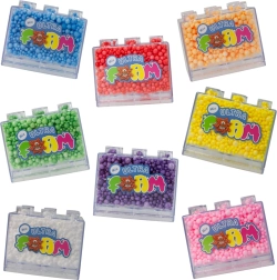 Cada cajita contiene bolitas de espuma de varios colores, ideales para crear y divertirse.