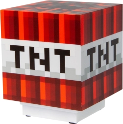 Elegante lámpara de mesa con forma del icónico TNT del juego MINECRAFT que iluminará tu habitación y, al encenderla, crea un efecto de explosión. Ideal como luz nocturna, decoración de escritorio y regalo para jugadores. La alimentación se realiza con 2× pilas AAA (no incluidas).