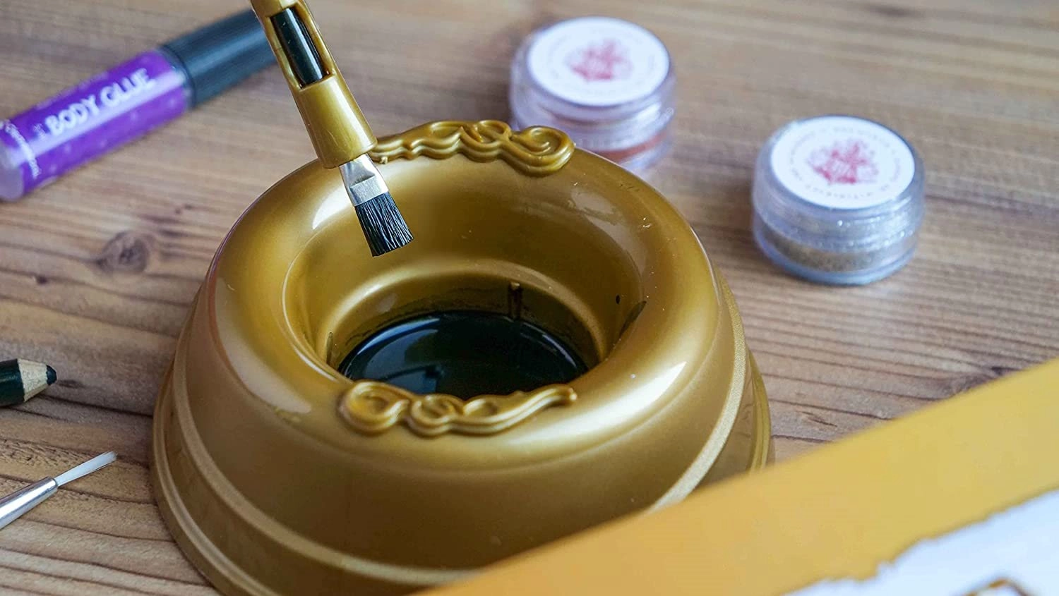 El aplicador especial con forma de pluma ayuda a aplicar de manera uniforme el polvo brillante y decorar la piel sin desorden. El set fomenta la creatividad, la motricidad fina y la experimentación segura con el estilo.