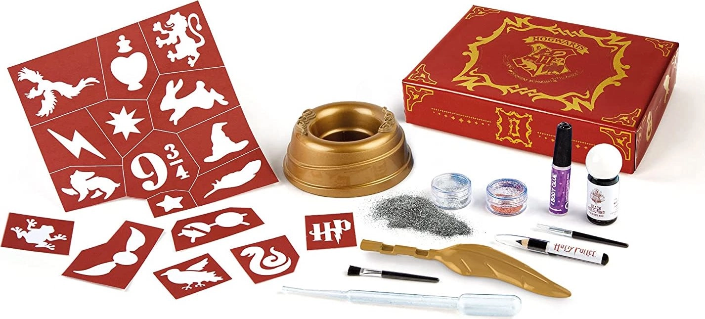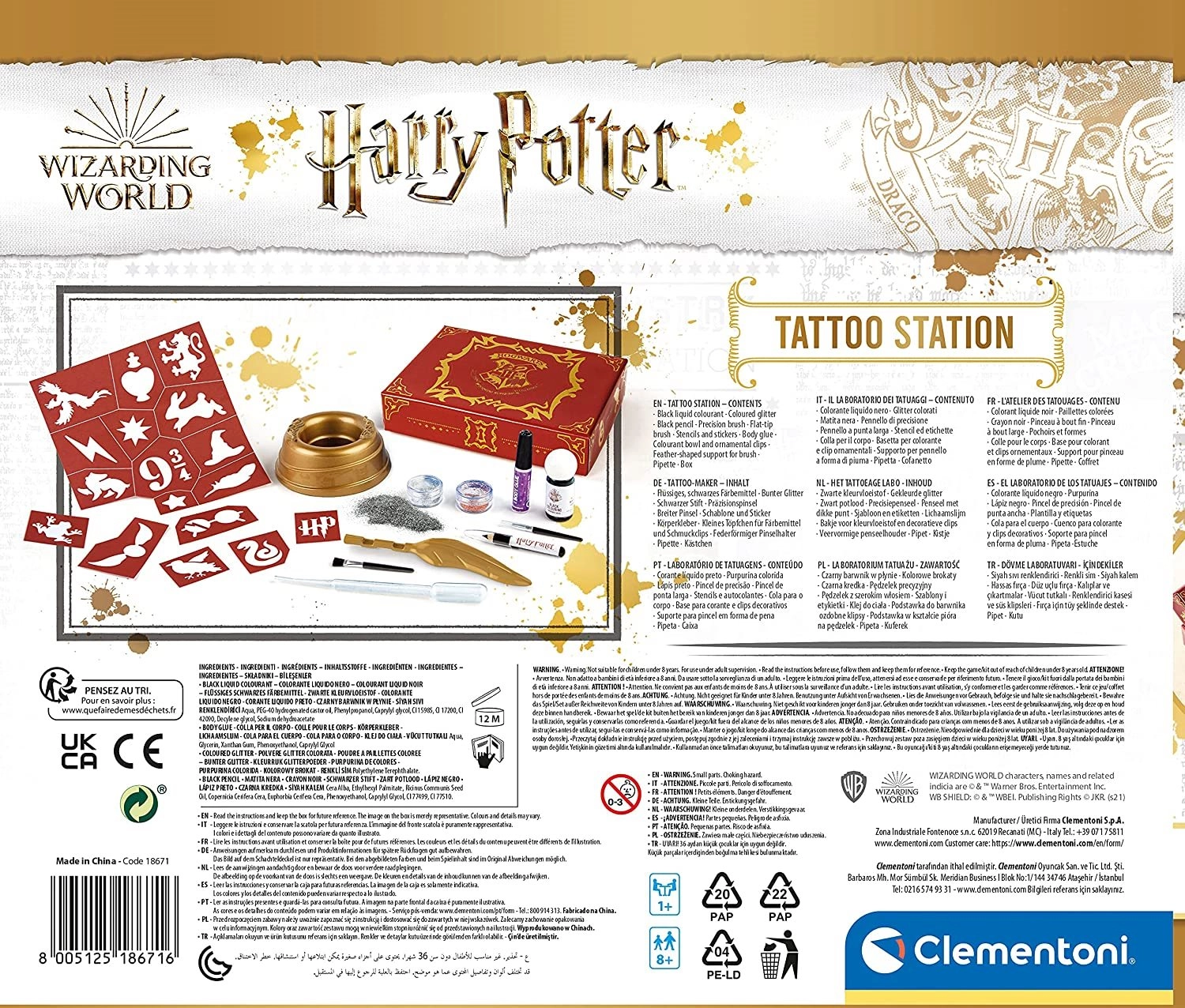 Descubre el mundo creativo de la magia con el estudio de tatuajes HARRY POTTER, que permite a los niños crear de forma segura tatuajes temporales originales. Gracias al amplio kit de accesorios, plantillas y purpurina, surgirán motivos mágicos inspirados en el mundo de hechizos y encantamientos. Aplicación sencilla y almacenaje organizado en el estuche hacen de este set un regalo ideal para pequeños magos y brujas.