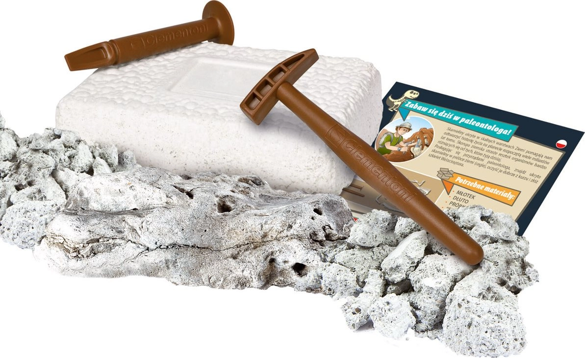 La caja incluye: martillo, cincel, bloque de tierra con la fósil de velocirráptor, manual ilustrado (checo, eslovaco, polaco, húngaro). Lea atentamente el manual antes de usar.
