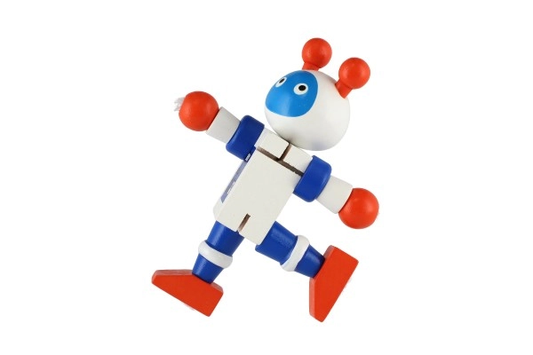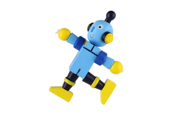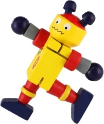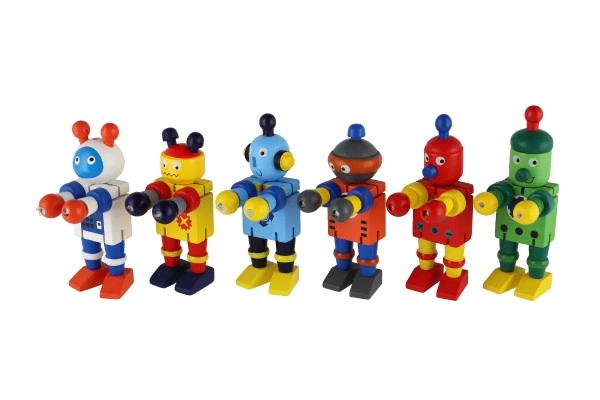 Estos coloridos robots de madera son ideales para los primeros juegos de construcción y de roles. Gracias a las uniones elásticas, se doblan con facilidad, mantienen las poses e invitan a los niños a crear historias con imaginación. La madera resistente y los bordes suaves garantizan un manejo seguro y agradable incluso para los más pequeños.