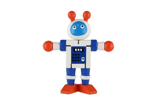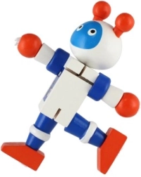 Este adorable robot de madera de 12 cm encantará a cada pequeño explorador. Gracias a las gomas elásticas, tiene extremidades y cabeza móviles, por lo que los niños pueden sentarlo, ponerlo de pie o colocarlo en diferentes poses. El juguete fomenta la motricidad fina, la creatividad y la imaginación. Apto a partir de 18 meses.