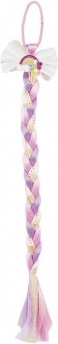 Toda niña sueña con tener el pelo largo y de colores. Gracias a esta goma con un postizo arcoíris, adornado con lentejuelas, podrá lucir un cabello de cuento.