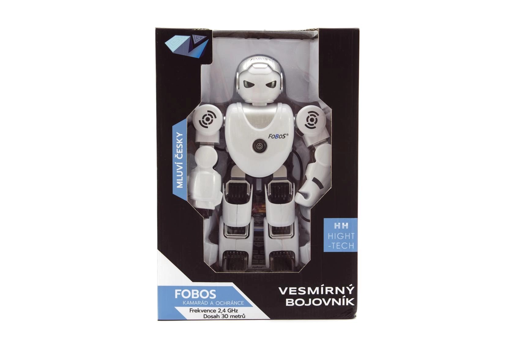 El robot espacial FOBOS es un compañero interactivo que habla checo, obedece al mando a distancia hasta 30 m, permite programar hasta 50 pasos, tiene 19 funciones y 70 frases. Mueve los brazos, camina, gira, dispara 5 proyectiles y gracias a la carga USB está listo para la acción rápidamente.