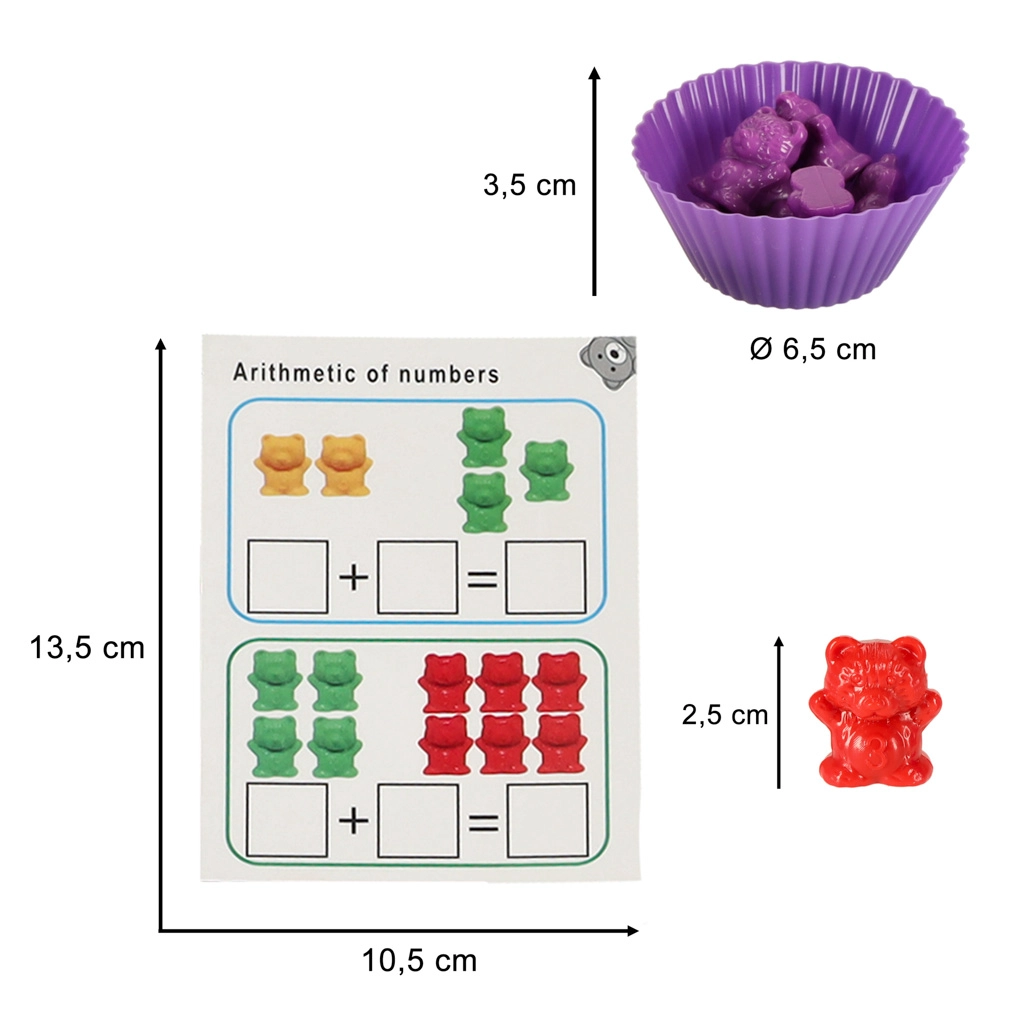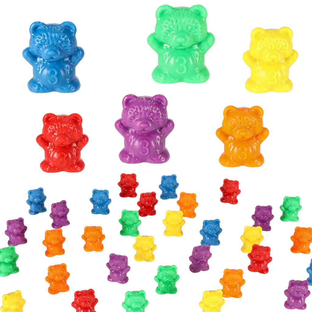 36 ositos de colores en 6 tonalidades motivan a los niños a clasificar, sumar y comparar. Ideal para los primeros pasos en matemáticas a través del juego.