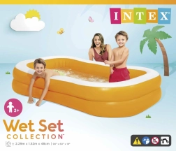 La piscina inflable Intex de forma rectangular ofrece espacio suficiente para niños y adultos. Gracias a sus dimensiones compactas, cabe en la mayoría de jardines o terrazas y proporciona un enfriamiento rápido en pocos minutos. Los materiales resistentes y las cámaras estables garantizan un baño cómodo y seguro.