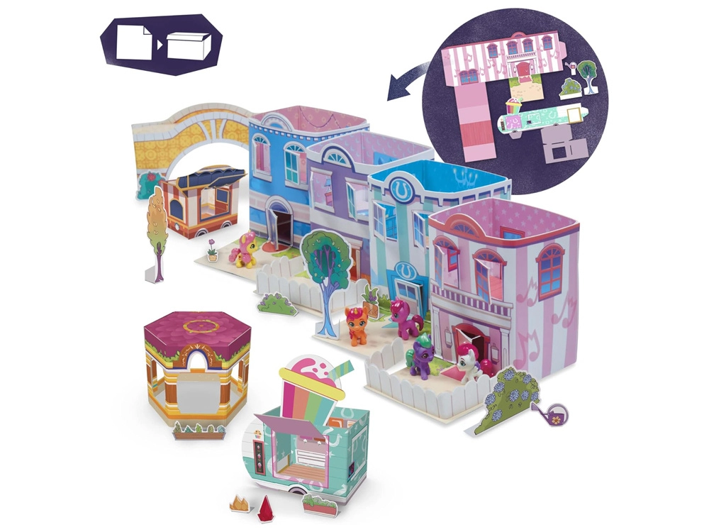 Transporta a los niños al mundo mágico de Equestria. El faro de cristal portátil en forma de maletín ofrece infinitas historias y posibilidades creativas. En su interior esperan 5 minifiguras —Sunny Starscout, Zipp Storm, Poesey Bloom, Daring Flare y Maverick Mauve— y multitud de accesorios para un juego creativo.
