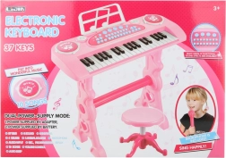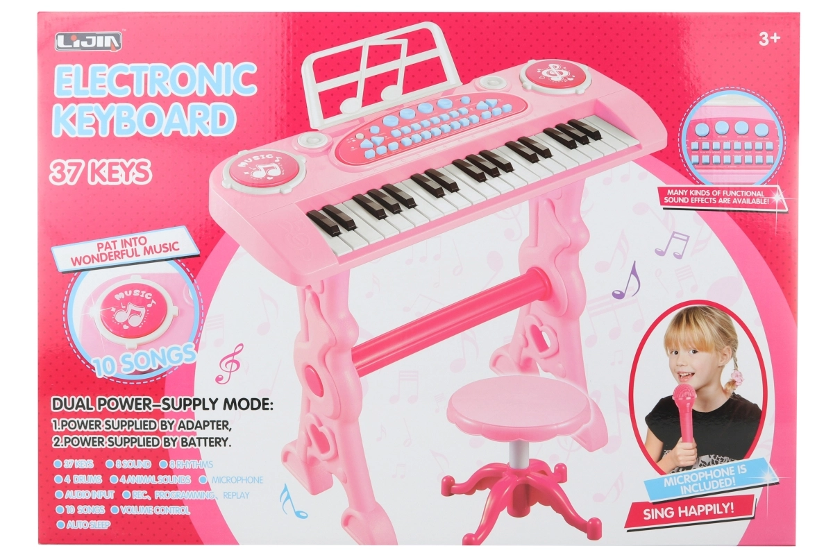 Pianito rosa para niños con adaptador que ofrece una amplia gama de posibilidades musicales. Permite tocar notas clásicas, distintos acompañamientos melódicos, seleccionar diversos instrumentos musicales e incluso sonidos de animales. Perfecto para el desarrollo de las habilidades musicales infantiles.