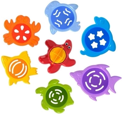 Las formas de pequeñas tortugas, delfines y otros animalitos fomentan el juego creativo y el descubrimiento.
