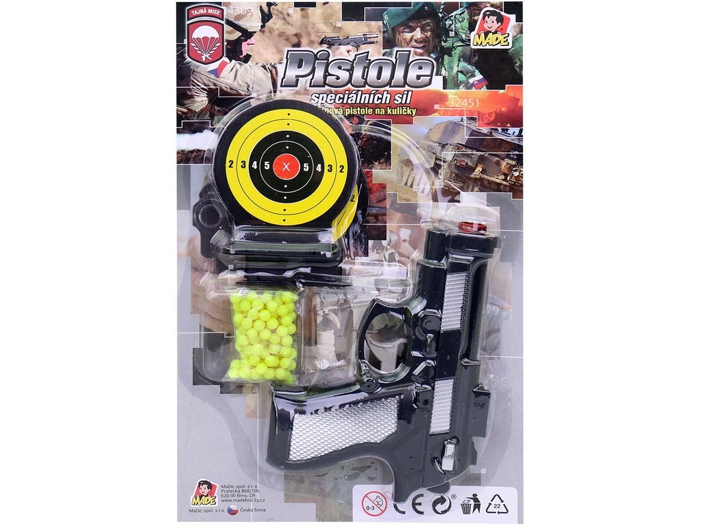 Esta pistola de bolitas es el juguete perfecto para pequeños tiradores a los que les gusta practicar su puntería. Gracias a las dos dianas incluidas, los niños pueden competir con amigos o mejorar por sí solos. La construcción de plástico, ligera y fácil de manejar, favorece un juego seguro y divertido.