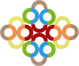 Este versátil mosaico de madera ofrece posibilidades de juego infinitas: desde construir torres y puentes hasta crear patrones simétricos y realizar tareas de equilibrio. Las piezas robustas y suavemente lijadas, en colores vivos, invitan a explorar y ayudan a los niños a aprender concentración y coordinación ojo-mano.