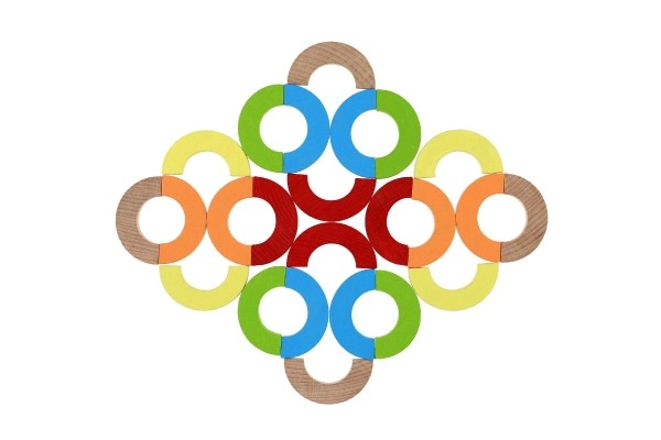 Los arcos arcoíris y semicírculos se pueden apilar en torres, puentes y retos de equilibrio. Así, los niños desarrollan la concentración, la estabilidad y la percepción espacial.