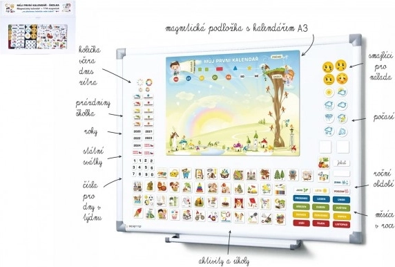 Este original calendario magnético es ideal para niños que adoran jugar con imanes. Ayuda a los niños a aprender de forma interactiva a planificar las actividades diarias, reconocer las estaciones del año, los meses, los días de la semana y mucho más.
