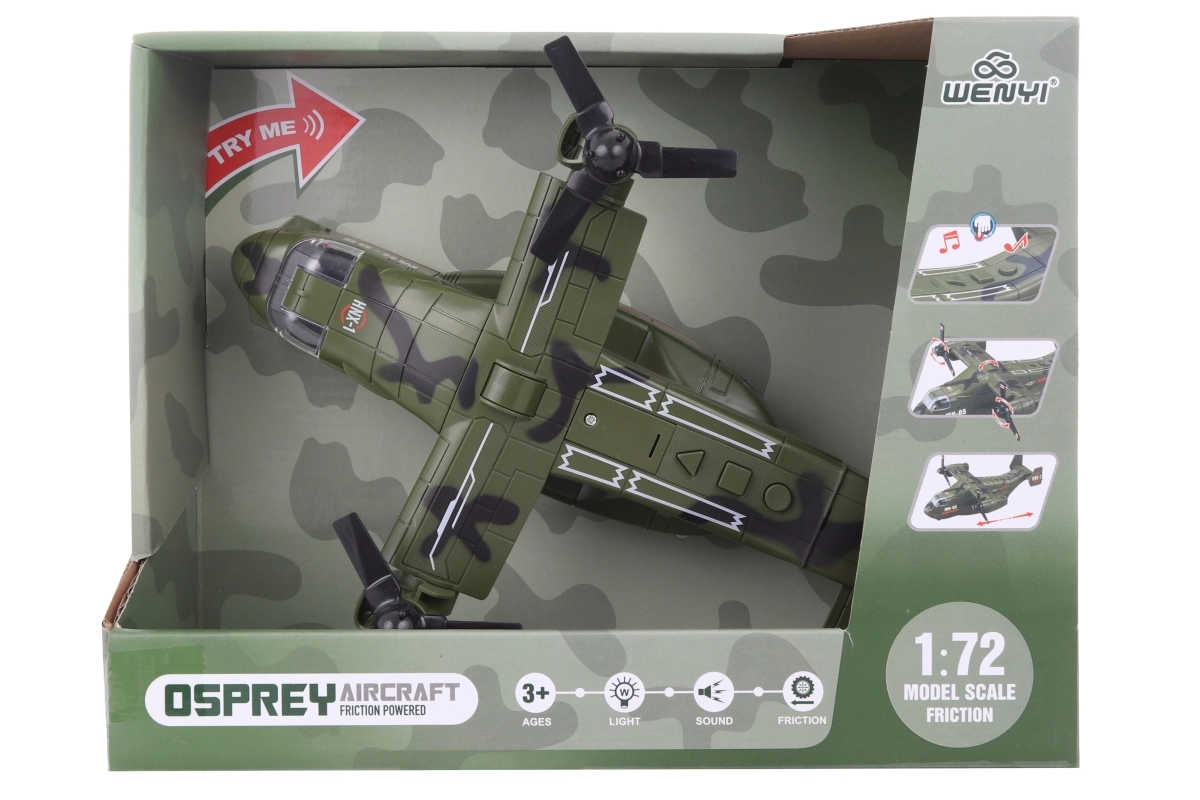 Este avión militar de plástico es una elección perfecta para los niños que adoran la tecnología militar y las historias llenas de acción. Al pulsar los botones se activan efectos de sonido y de luz, que estimulan la imaginación y sumergen a los niños en el juego. Gracias a su diseño resistente, es adecuado para el uso diario.