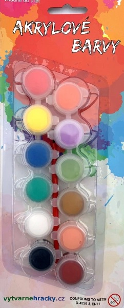 Pinturas acrílicas aptas para niños y adultos, ideales para diversas superficies como cerámica, vidrio y piedras. Fáciles de usar con el pincel incluido.