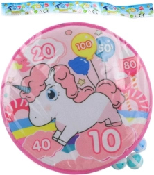 Disfruta de mucha diversión con esta colorida diana con unicornio, completamente segura para los más pequeños gracias al velcro. Las pelotas se adhieren fácilmente a la superficie, de modo que los niños pueden concentrarse en la precisión y sumar puntos sin riesgo de lesiones.
