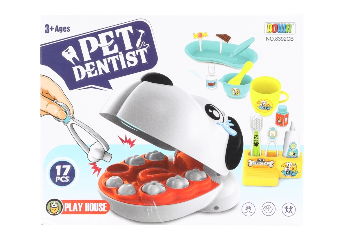 El set Juego de dentista canino ofrece a los niños una forma divertida de conocer el mundo de la odontología. Gracias a su completo equipamiento y elementos interactivos, los pequeños doctores practican el cuidado adecuado de la dentadura, adquieren hábitos de higiene y comprenden cómo el azúcar afecta la salud dental. Ideal para jugar solos o con amigos.