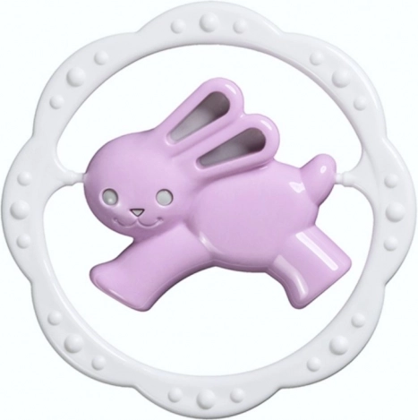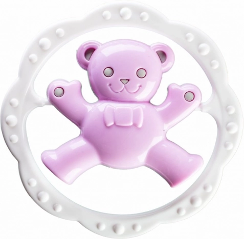 Colorido sonajero para bebés con mordedor en forma de aro y motivo de osito o conejito que ayuda a calmar las encías durante la dentición y, al mismo tiempo, desarrolla la motricidad fina y la percepción visual. Su diseño compacto y ligero es ideal para las manos pequeñas del bebé.