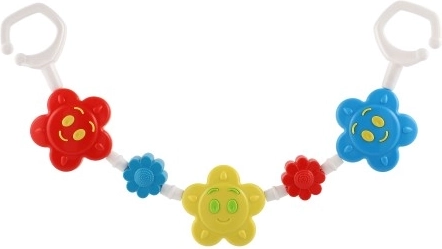 Este colorido juguete de cadena con sol y estrellitas se fija fácilmente al cochecito, a la silla de coche o a la cuna. Estimula la percepción visual, la motricidad fina y entretiene al bebé tanto en los desplazamientos como en casa. Gracias al plástico resistente y al diseño seguro, es ideal para el uso diario.