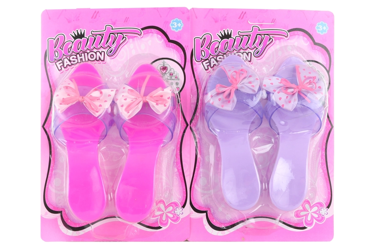 Adorables zapatitos de plástico con un elegante lazo que encantarán a cualquier pequeña amante de la moda. Son ligeros, fáciles de poner y perfectos para jugar a las princesas o para disfraces. Zapatitos con lazo, cómodos para el juego infantil, complemento ideal para el armario de los niños.