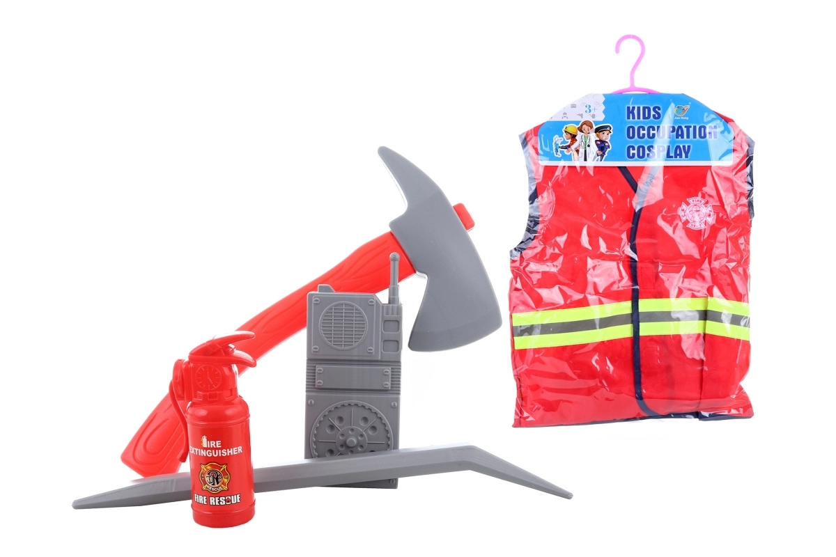 Set para pequeños bomberos que incluye todo lo necesario para jugar a ser rescatistas. Chaleco de bombero, walkie-talkie, hacha, pata de cabra y extintor garantizan horas de diversión para cada pequeño valiente.