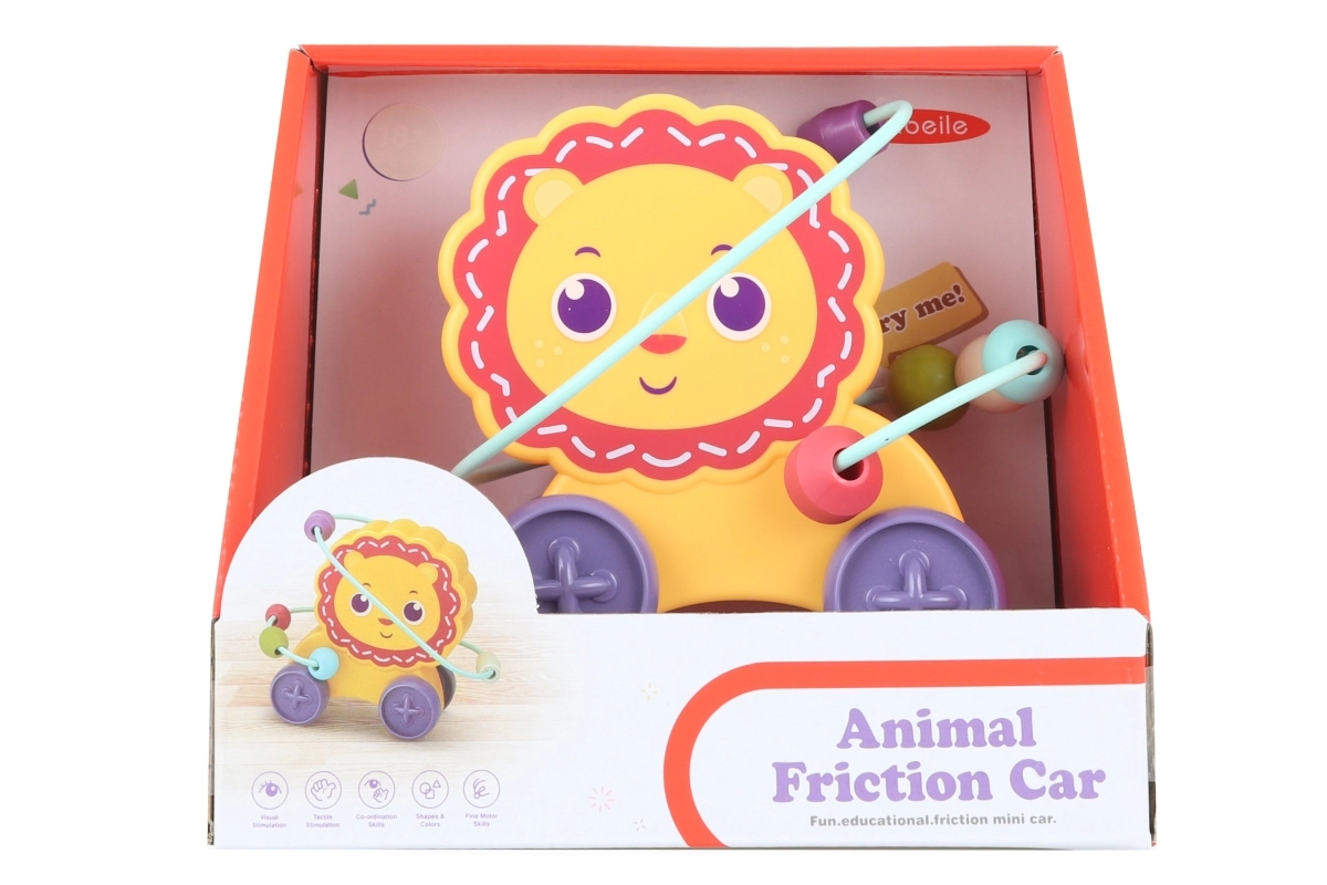 El adorable león esconde en su interior un colorido laberinto con cuentas que los niños desplazan por los alambres. El juguete es ligero, estable y, gracias a las ruedas, los niños pueden moverlo fácilmente. Una gran elección como primer juguete de habilidades para los más pequeños a partir de 18 meses.