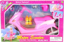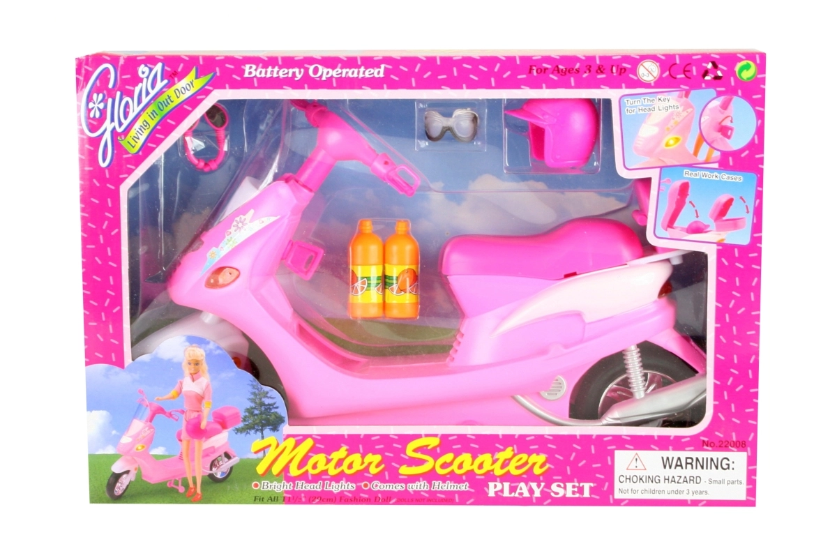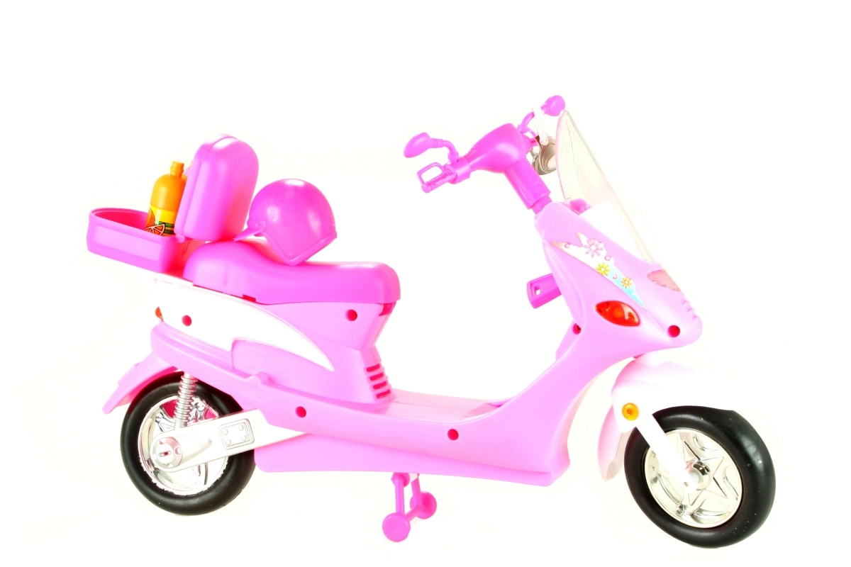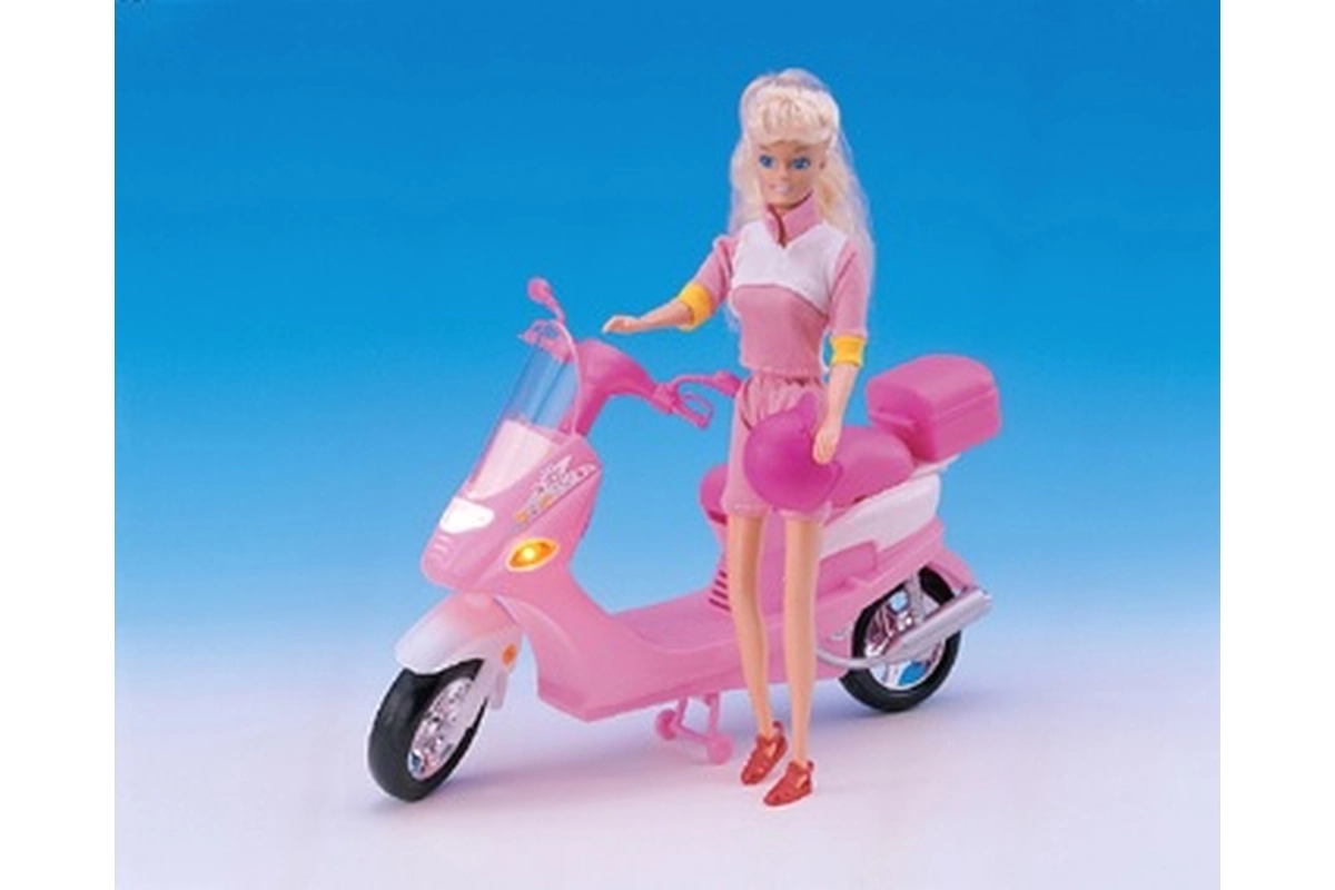 Las luces delanteras del scooter se encienden al girar la llave, lo que aumenta su autenticidad. Prepárate para la aventura con las muñecas gracias al portaequipajes trasero con tapa abatible para guardar pequeños objetos. El paquete incluye gafas de estilo, un casco y dos botellas de plástico para que tus muñecas siempre estén listas para el viaje.