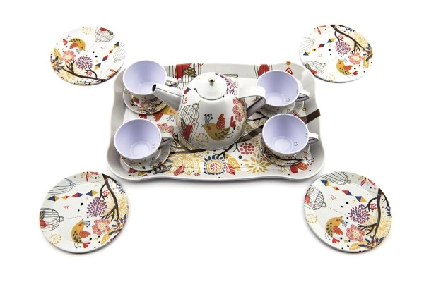 Este juego de té de hojalata es una gran opción para fiestas de té infantiles con muñecas y amigos. Su cuidada elaboración y materiales ligeros garantizan un juego cómodo, mientras que el diseño atractivo encantará a cualquier pequeña amante del servicio de mesa.