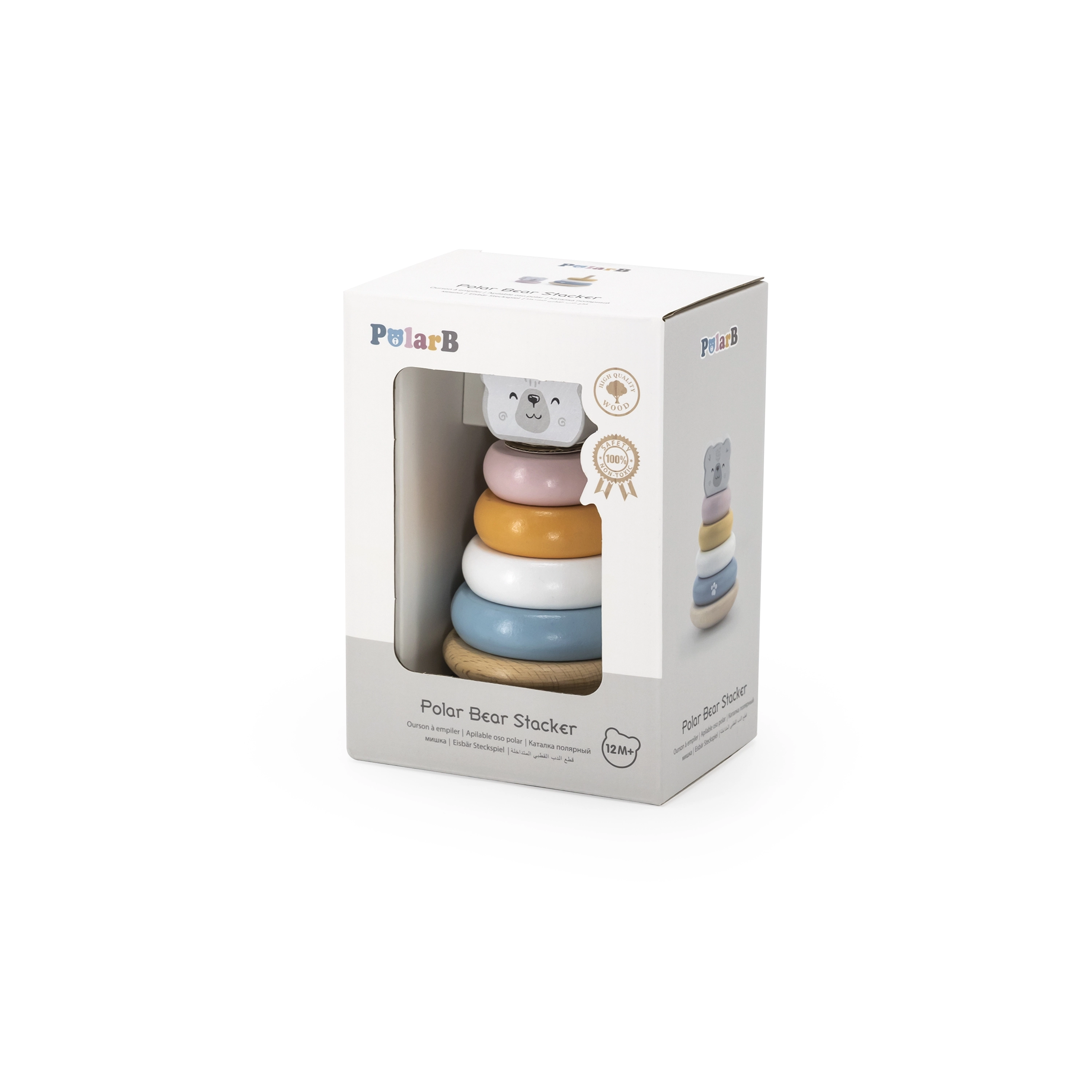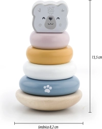 La pirámide educativa de madera con el motivo del oso polar es el juguete ideal para los más pequeños. Esta pirámide está equipada con seis anillos de diferentes tamaños y colores, incluido un anillo principal con cabeza de oso. Gracias a su resistente estructura de madera, el juguete no solo es seguro, sino también duradero.