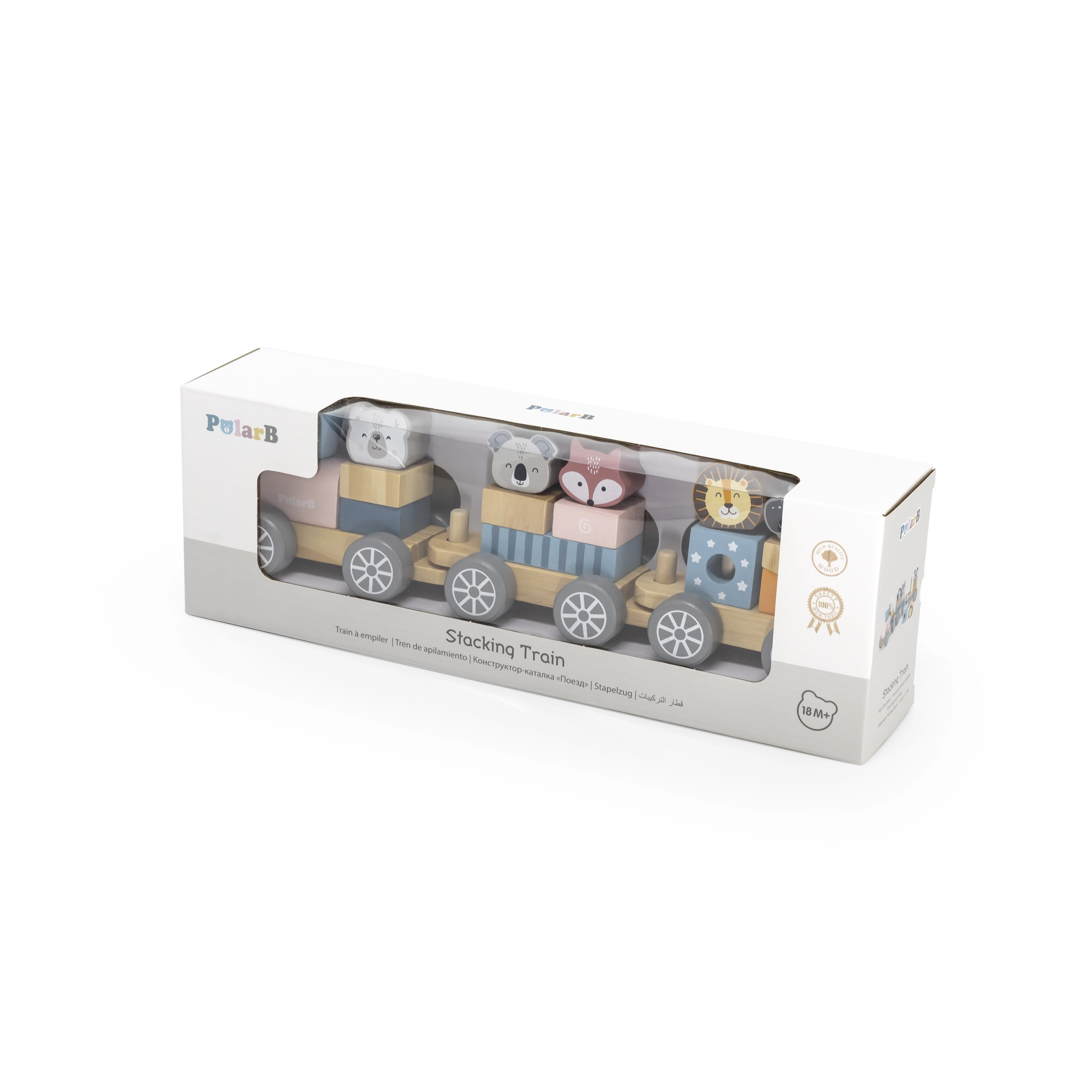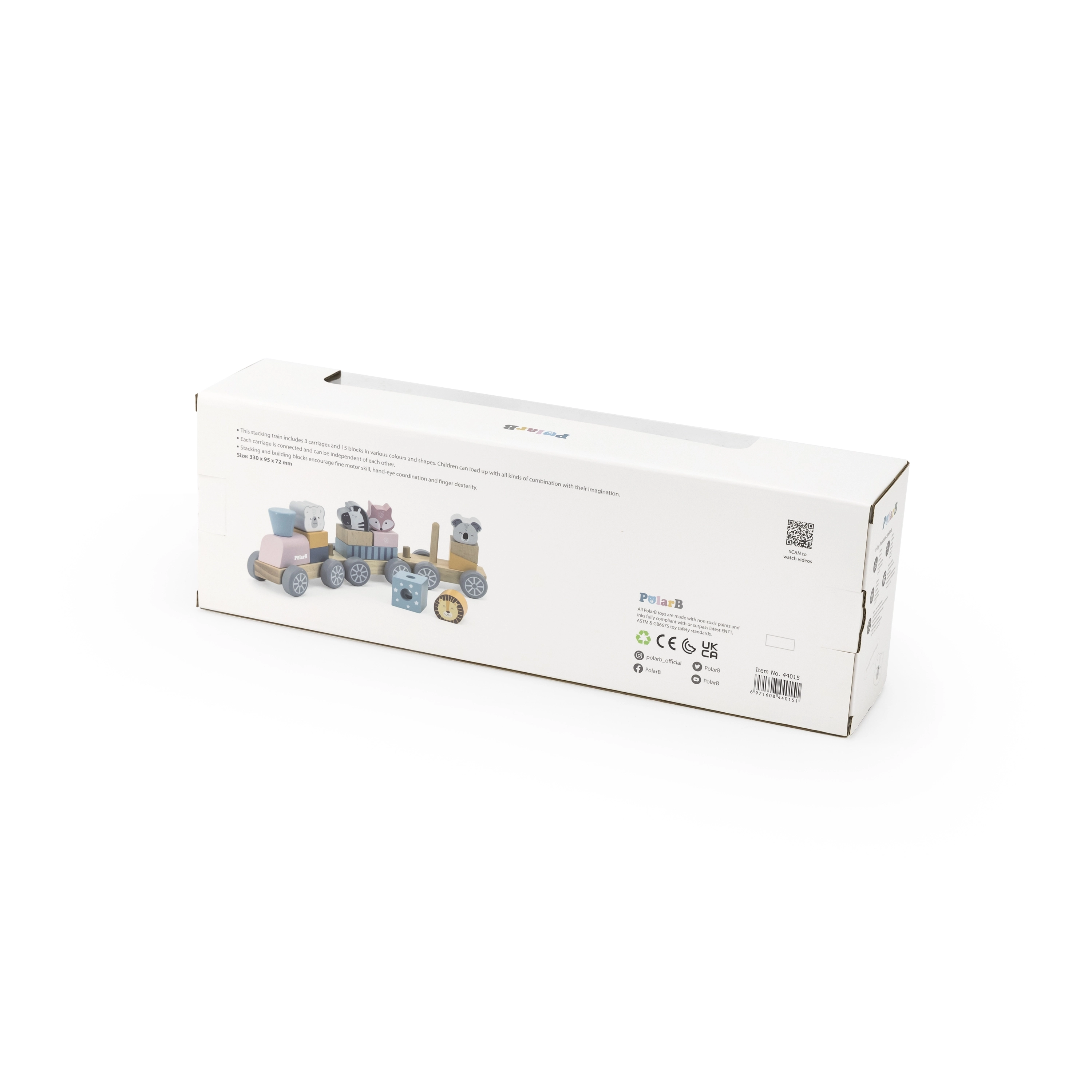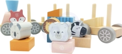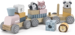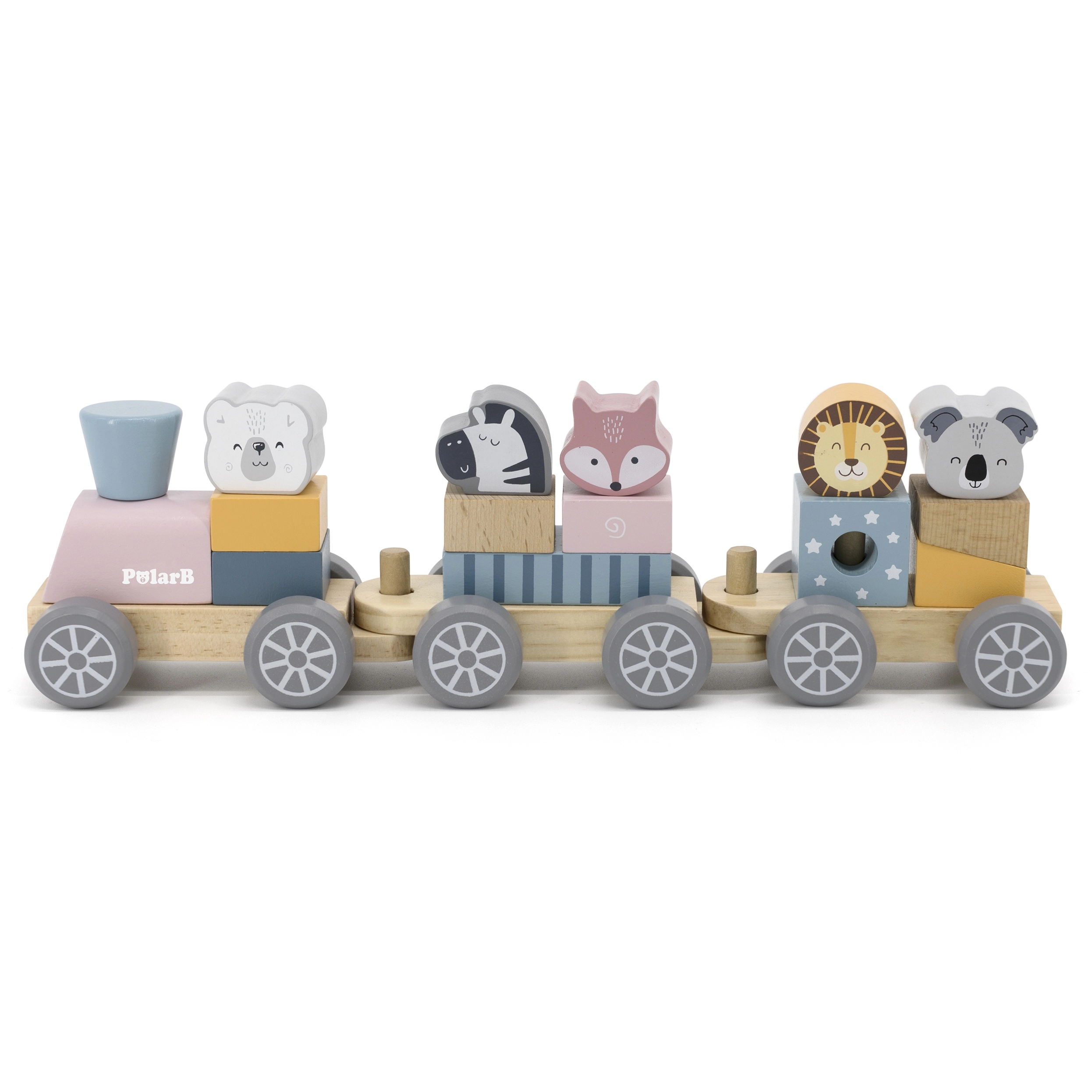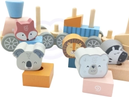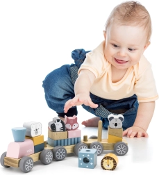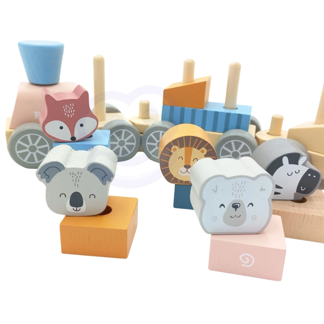 El tren está diseñado para estimular la creatividad infantil y la coordinación de la motricidad fina gracias al apilado de bloques y animalitos.