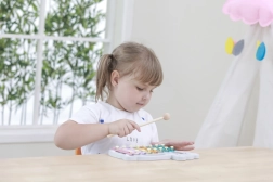 La construcción resistente, los bordes redondeados y las dimensiones compactas garantizan un uso seguro y cómodo incluso para los más pequeños. El xilófono es una excelente elección para desarrollar el sentido musical, la concentración y la paciencia.