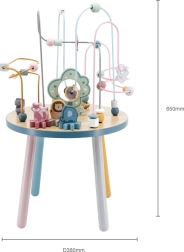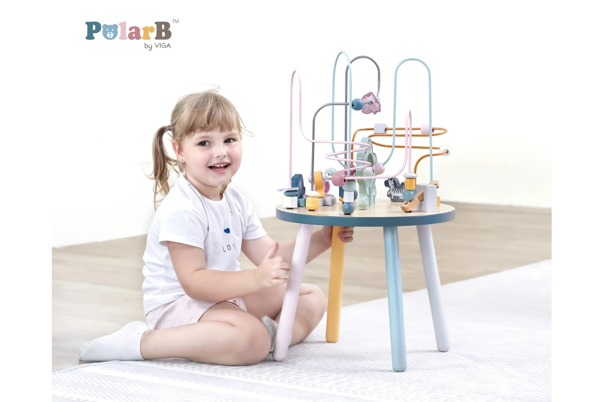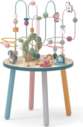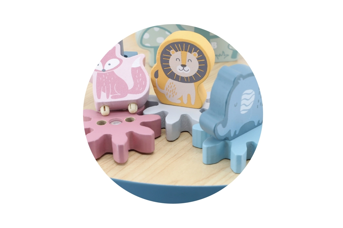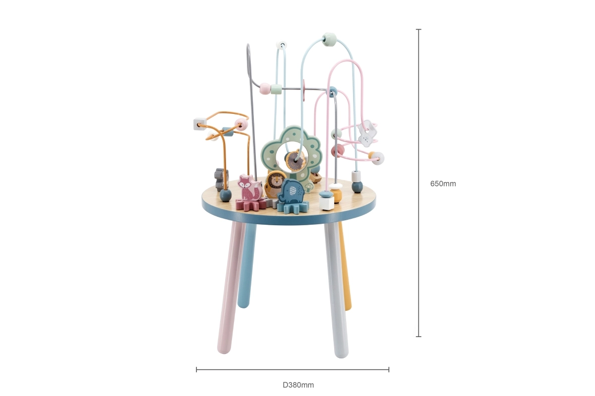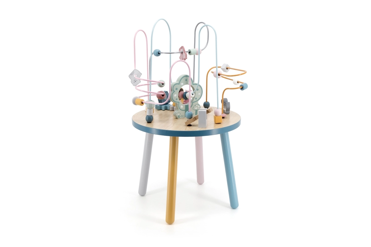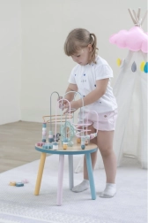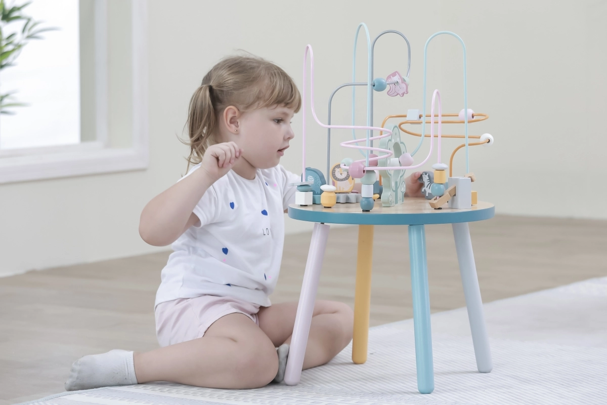 El laberinto de cuentas sobre la resistente mesa de madera invita a los niños a explorar. Las formas de colores y los adorables animalitos (osito, zorro, erizo) motivan el movimiento de los deditos, el agarre preciso y la creación de historias propias. Una elección ideal para un enfoque “Montessori” en casa, aprendiendo a través del juego que desarrolla paciencia, concentración e imaginación.