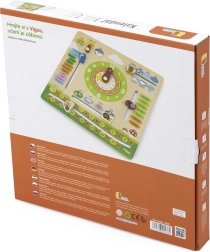 El calendario de madera VIGA es una herramienta educativa para preescolares que combina aprendizaje y juego. Gracias a su diseño claro y a las etiquetas en checo, los niños adquieren fácilmente conceptos básicos de la vida cotidiana. Los elementos móviles —manecillas del reloj, indicador del clima y de las estaciones— estimulan la participación activa y desarrollan la motricidad fina.