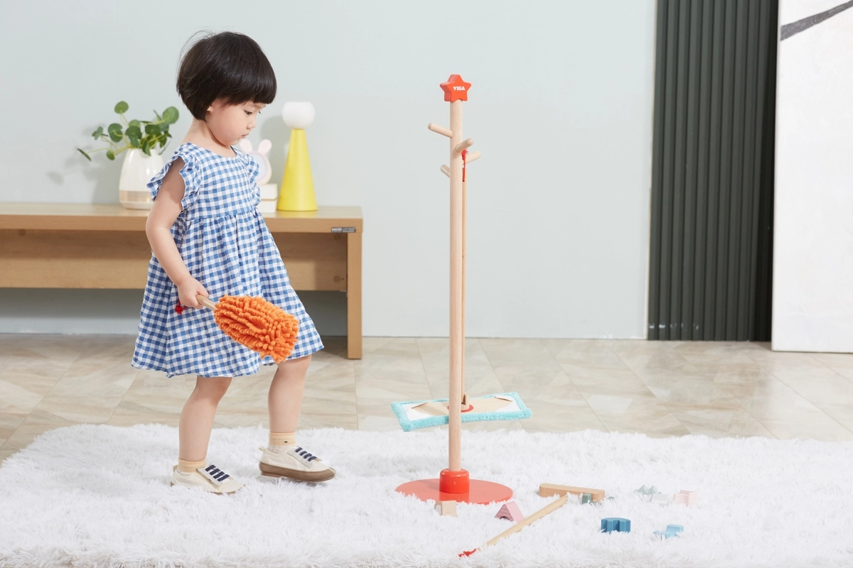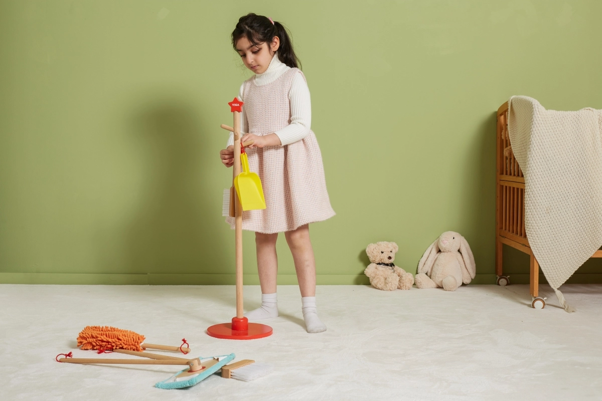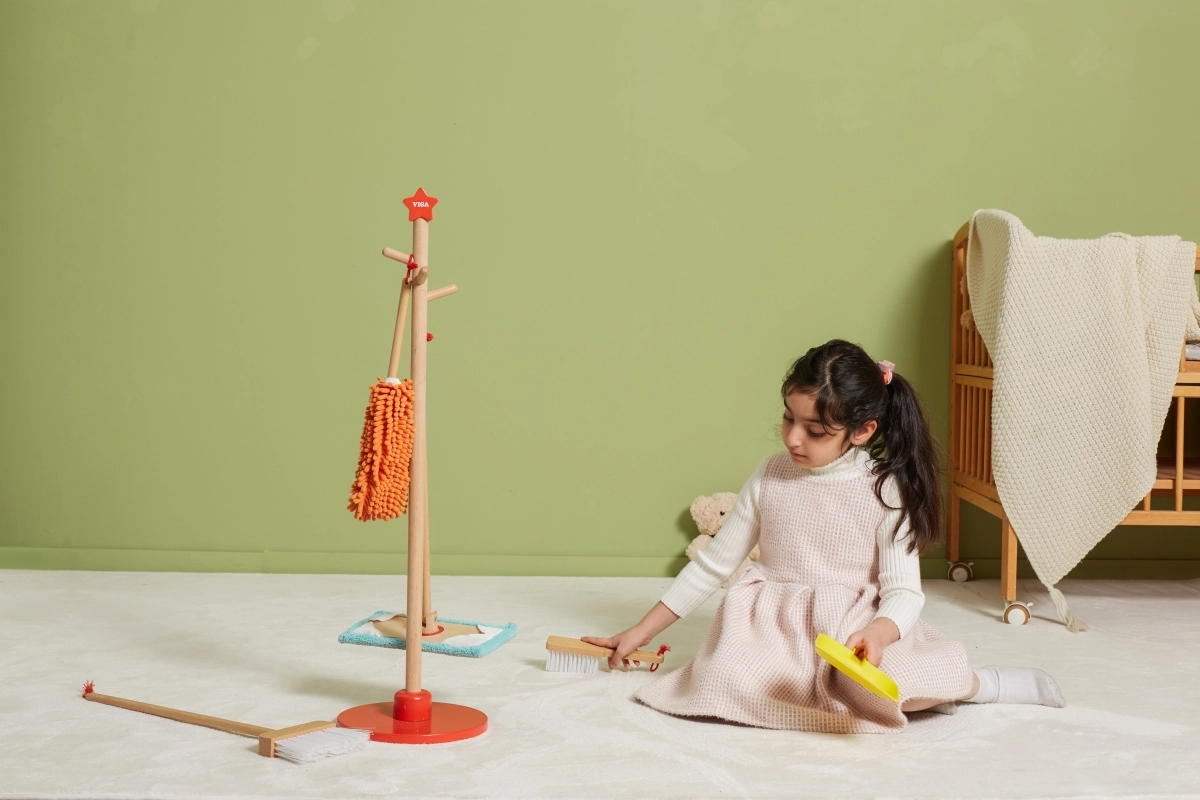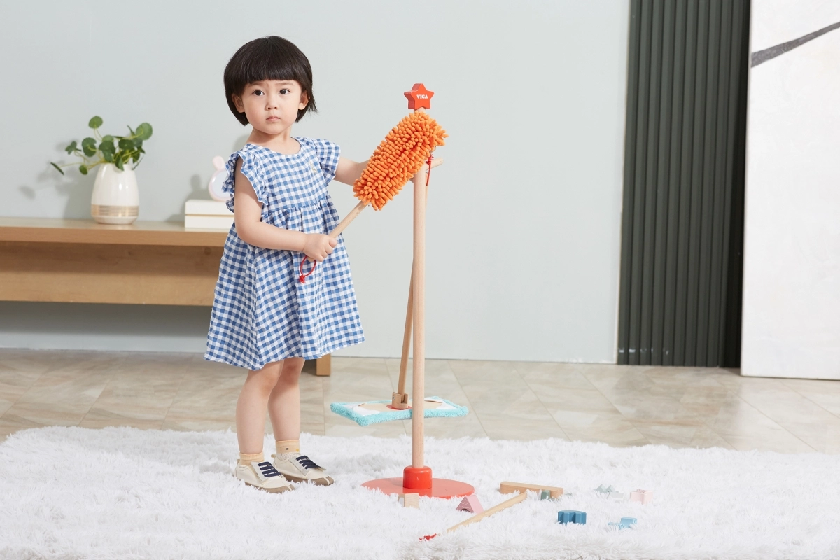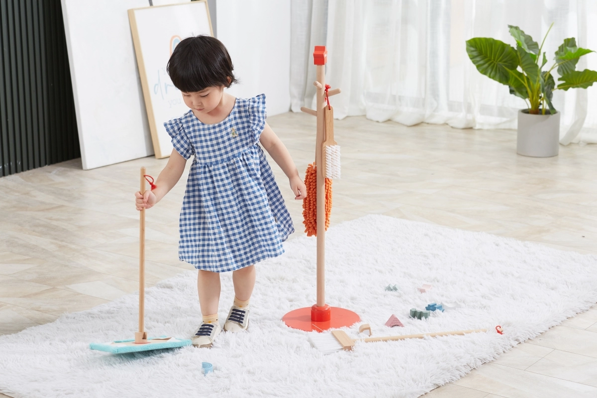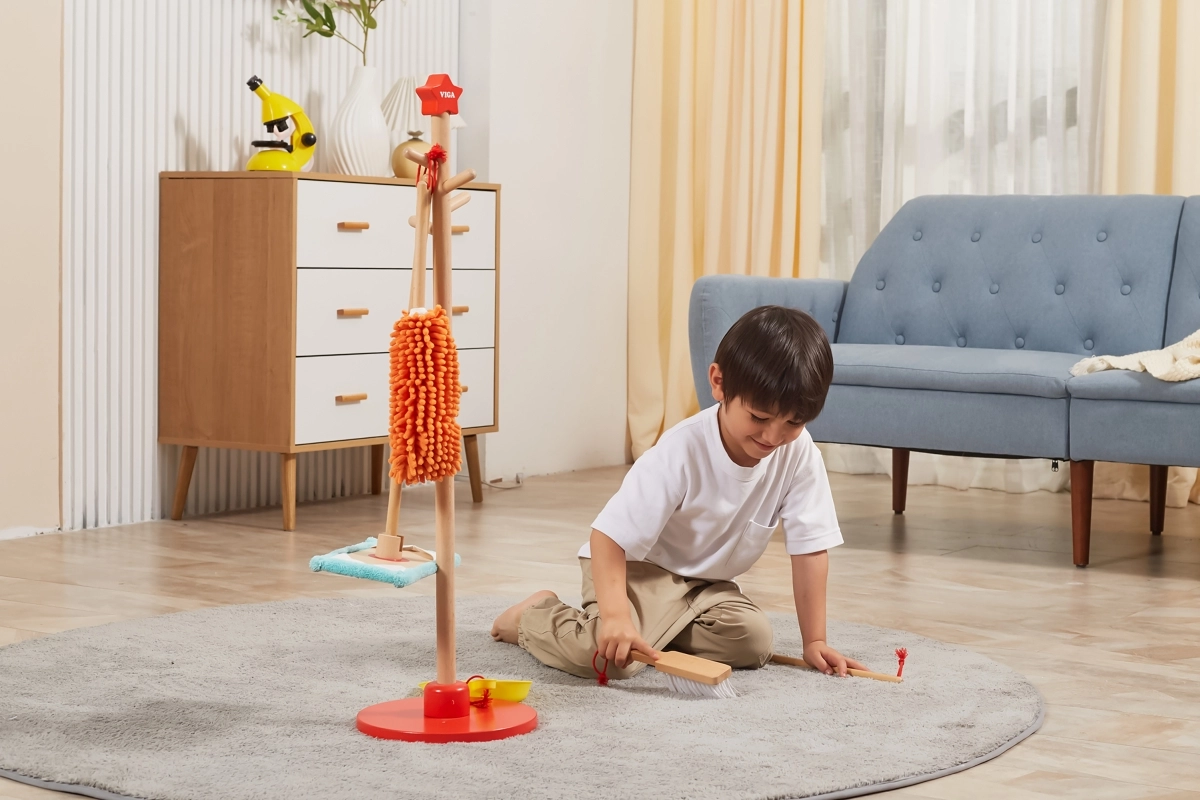 Gracias a la variedad de herramientas de limpieza, los niños perfeccionan su motricidad y equilibrio mientras juegan.