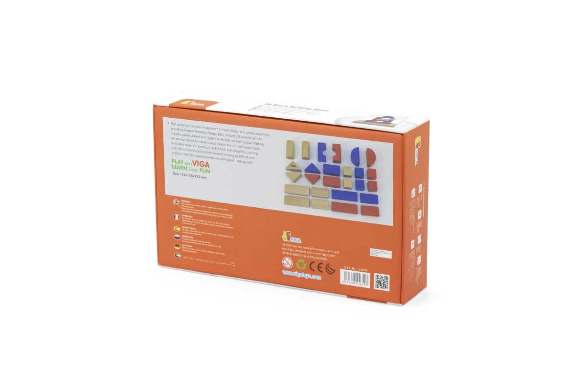 Este ingenioso juego de construcción 3D de VIGA simula el diseño en el espacio: los niños construyen siguiendo modelos o su propia imaginación tras paneles acrílicos transparentes, que crean un atractivo efecto 3D. Incluye un libro con 32 retos de dificultad progresiva, para que lo disfruten tanto principiantes como pequeños constructores.