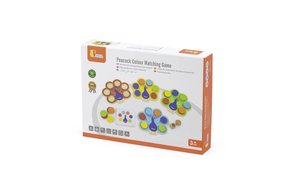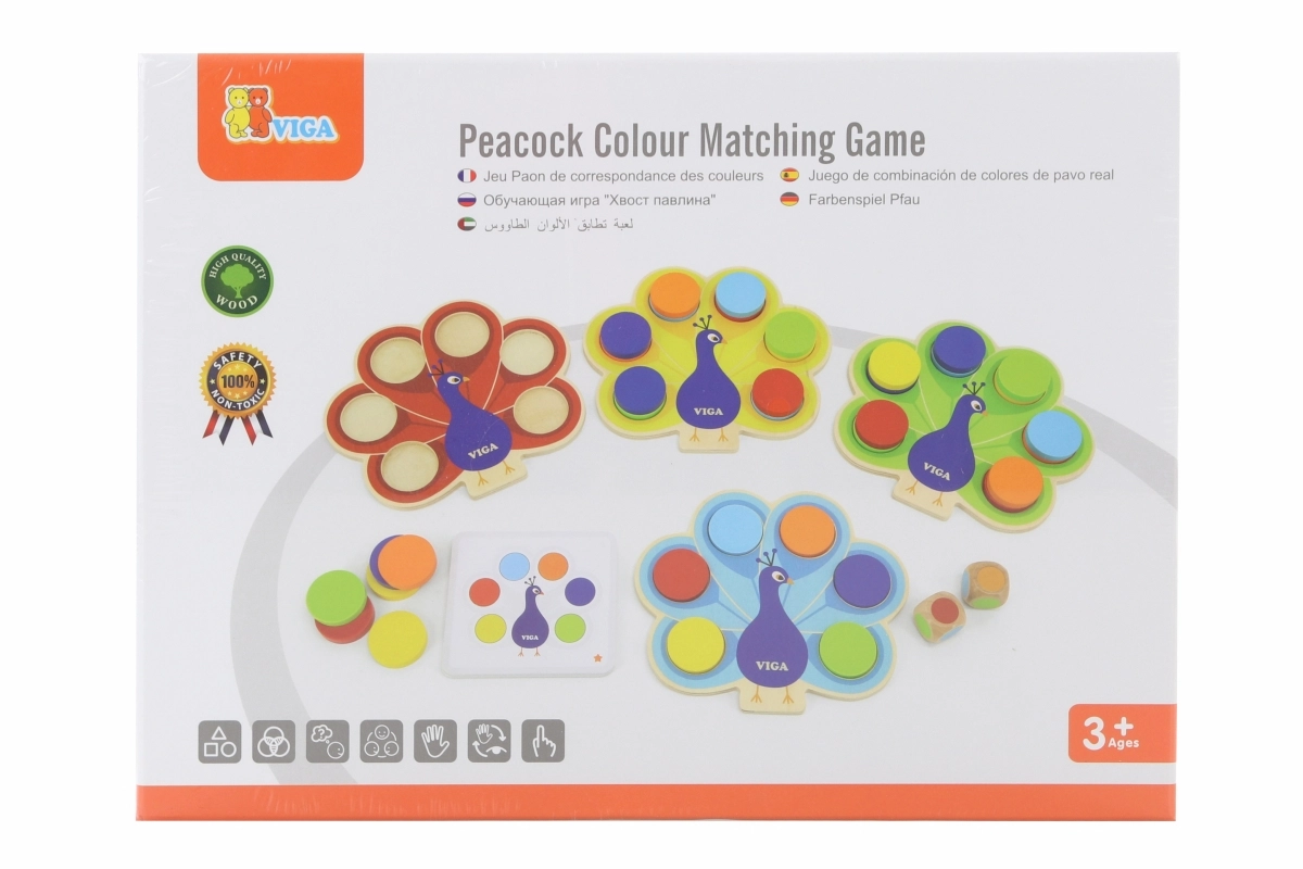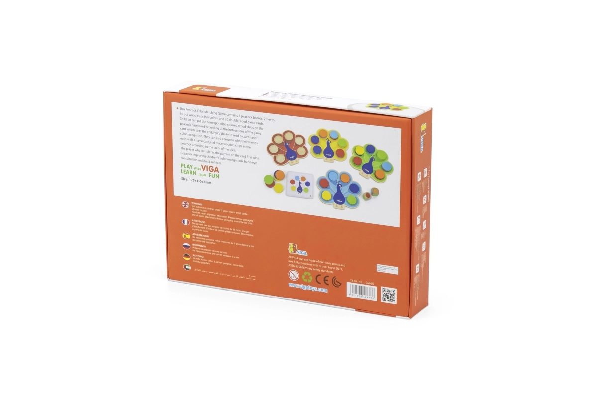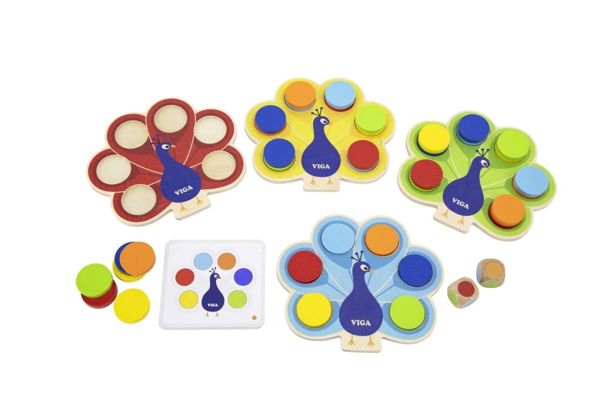 Descubre un juego de madera ingeniosamente diseñado en el que los niños completan la colorida cola del pavo. Siguiendo las cartas de doble cara o el resultado de los dados, colocan los discos en los orificios correctos, entrenando de forma natural el pensamiento lógico, la atención y la sincronización de movimientos. La segura fabricación en madera de haya y los colores no tóxicos garantizan una diversión sin preocupaciones.