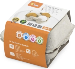 El set viene en un resistente cartón portahuevos que parece un envase real, haciendo el juego de cocina aún más auténtico. Gracias a sus dimensiones compactas, se guarda y transporta fácilmente.