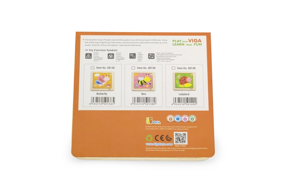 Este hermoso juguete de madera es un gran complemento tanto para el hogar como para guarderías. Consta de cuatro piezas temáticas fabricadas con materiales de alta calidad y pintadas con pinturas no tóxicas. La base incluye una imagen guía que facilita el montaje y añade diversión. Las piezas están diseñadas sin bordes afilados, por lo que son seguras para los niños.