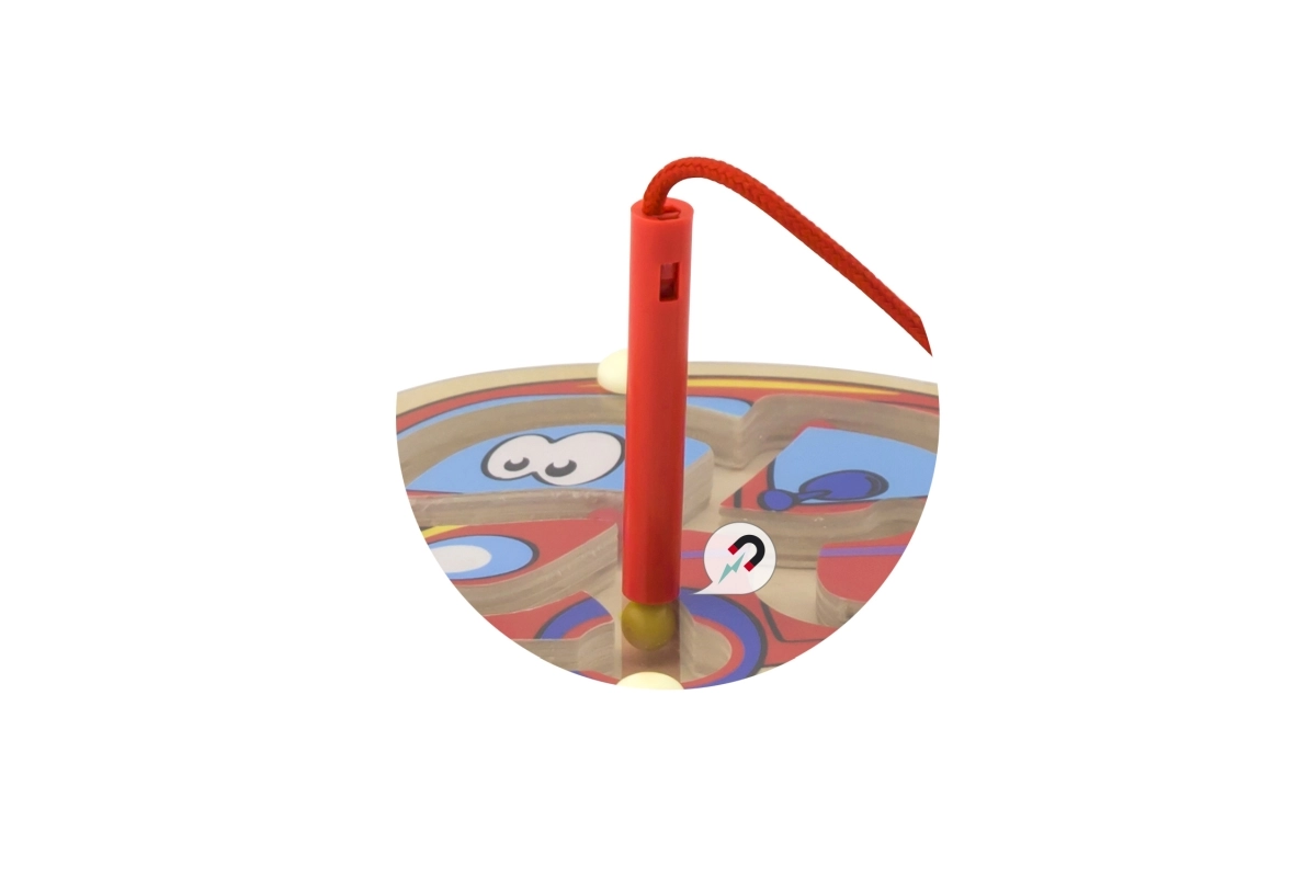 Gracias a la varilla magnética unida con una cuerda, manejar el laberinto es fácil y no hay riesgo de perder piezas importantes.