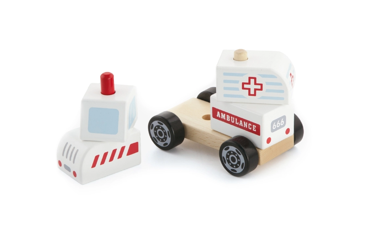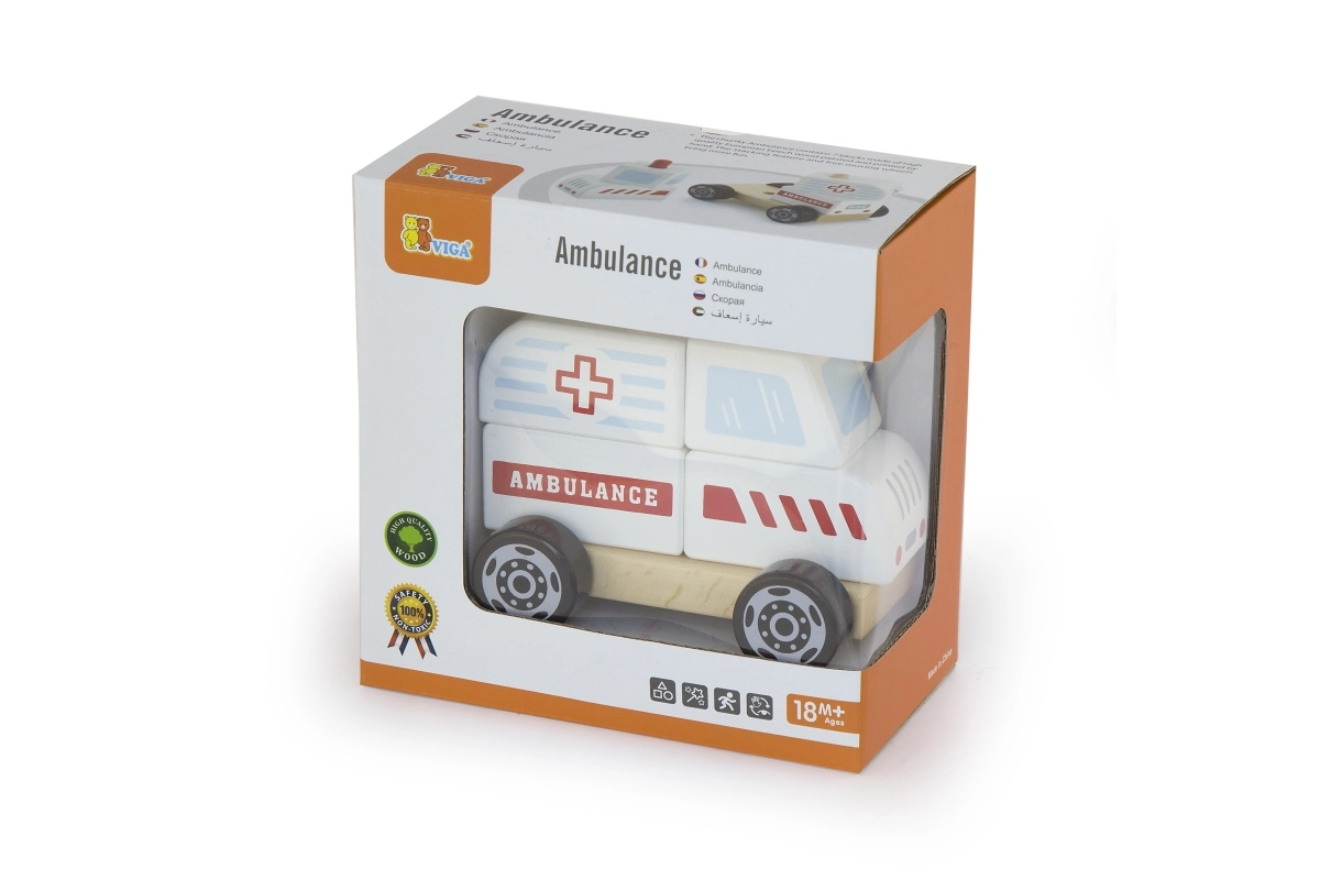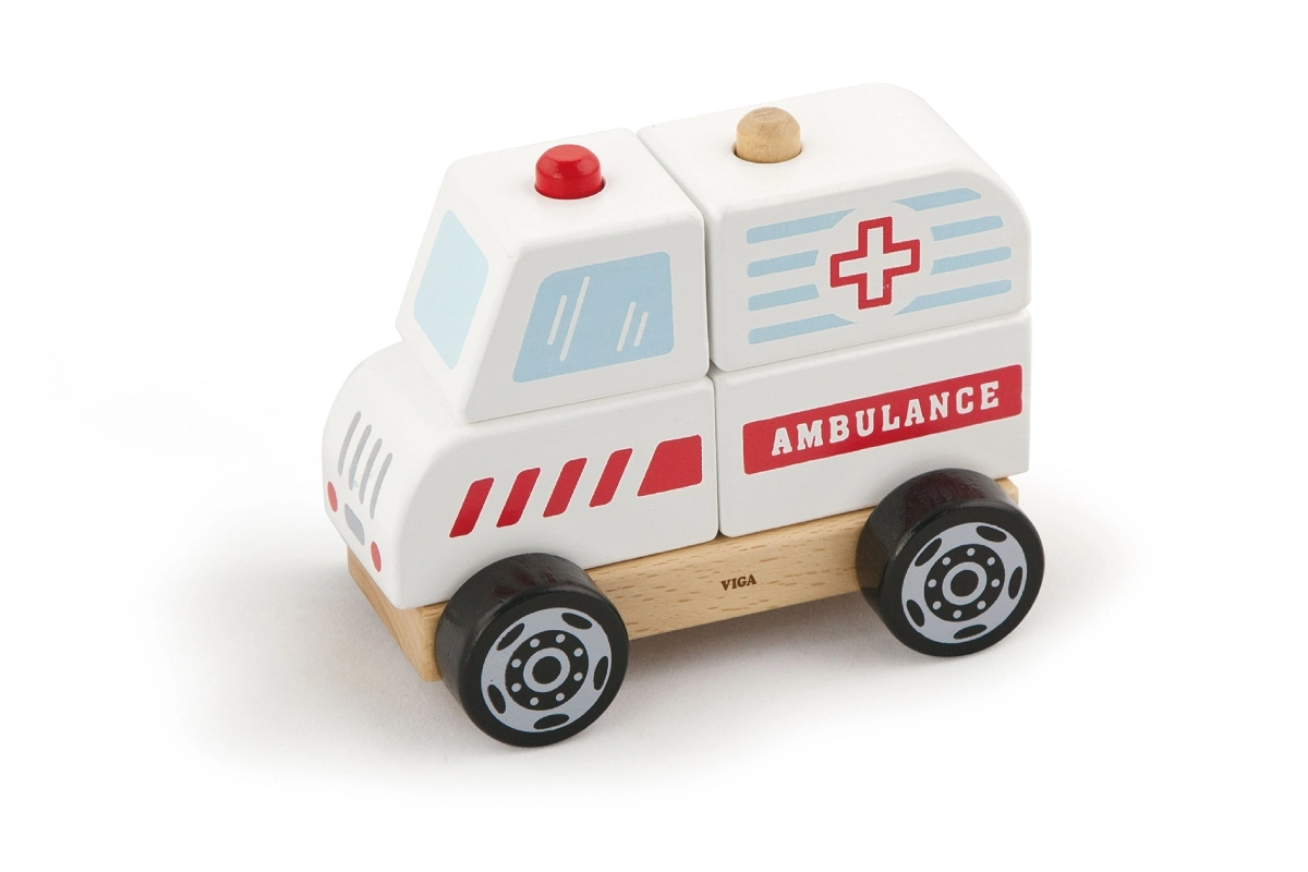 - Rompecabezas de madera y vehículo con ruedas – ambulancia