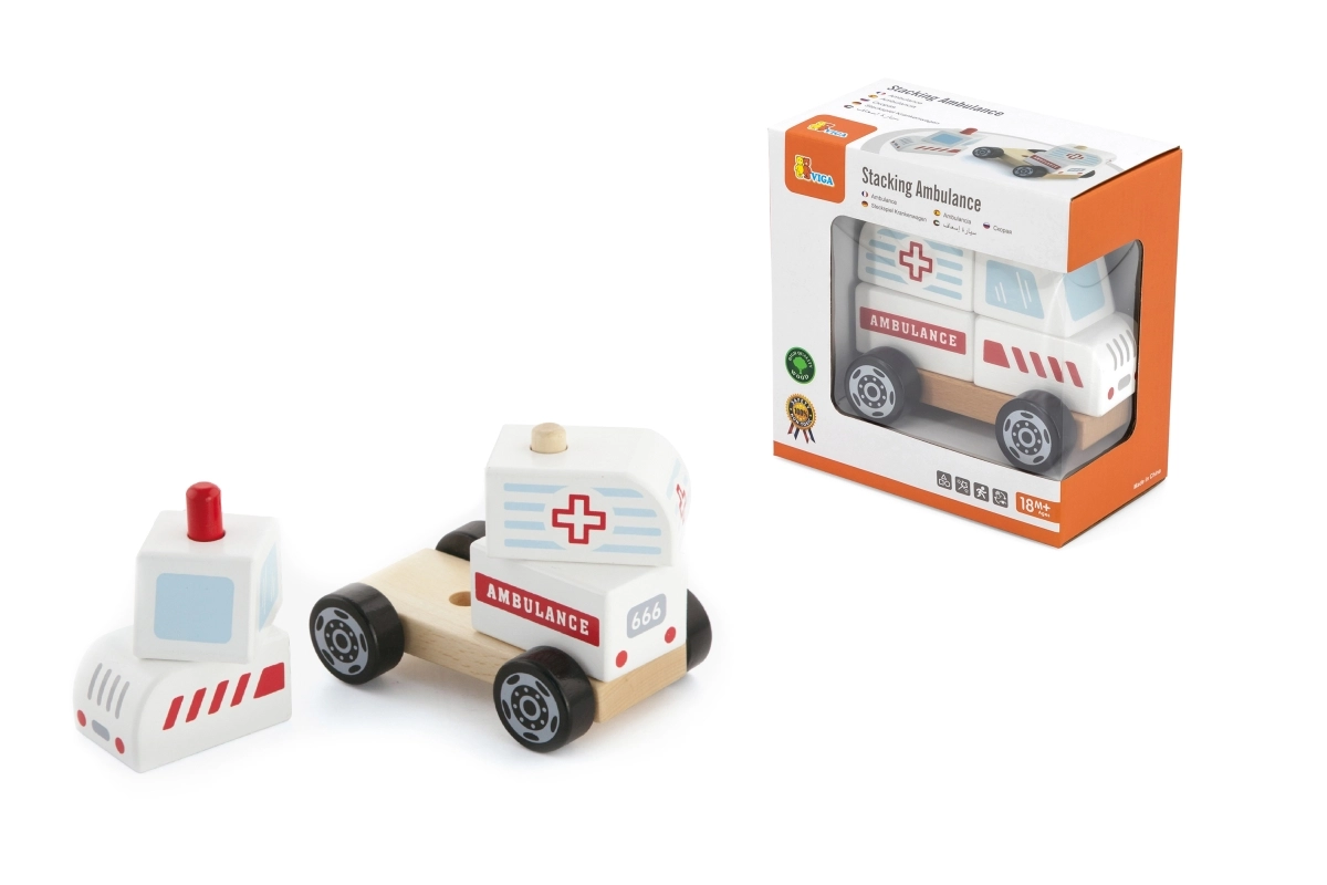 Descubra una ambulancia de madera de calidad que combina bloques encajables y ruedas móviles para un juego divertido y el desarrollo de la motricidad. Diseño seguro con bordes suaves, ideal para niños a partir de 18 meses. Dimensiones compactas, materiales resistentes y un atractivo diseño con el estampado AMBULANCE garantizan horas de juego creativo.