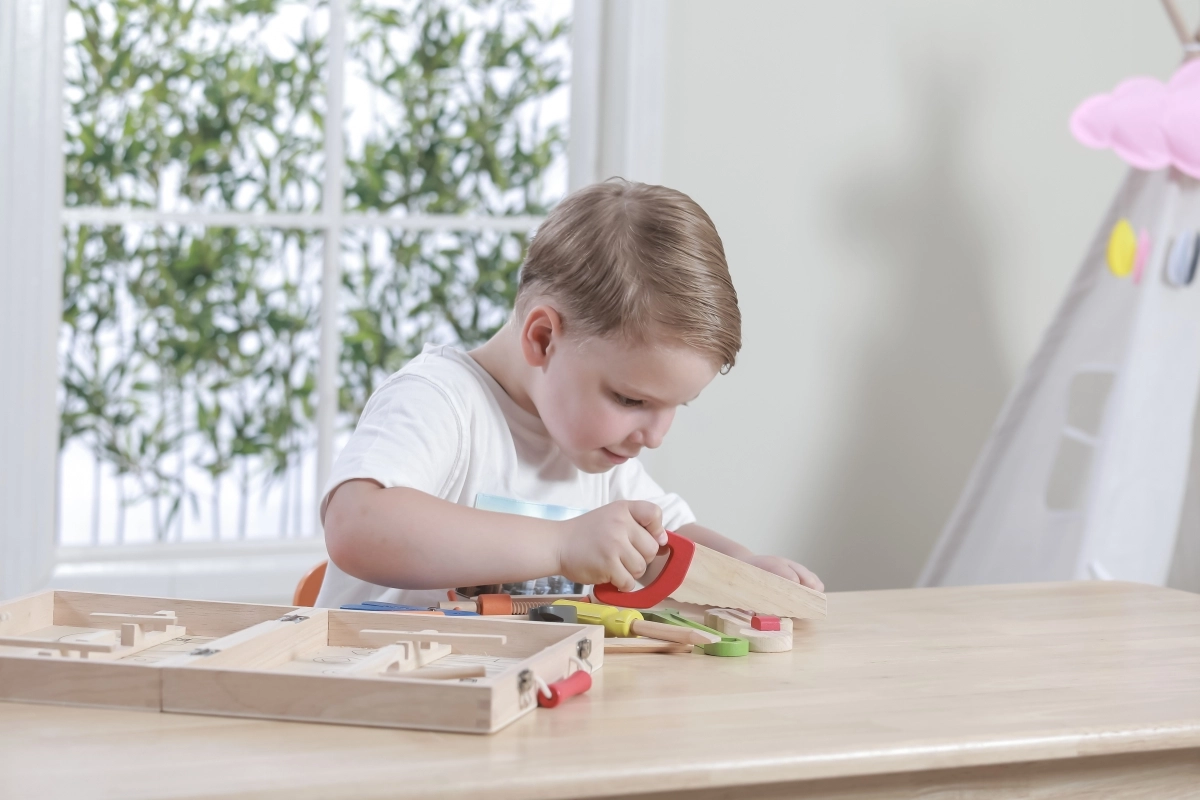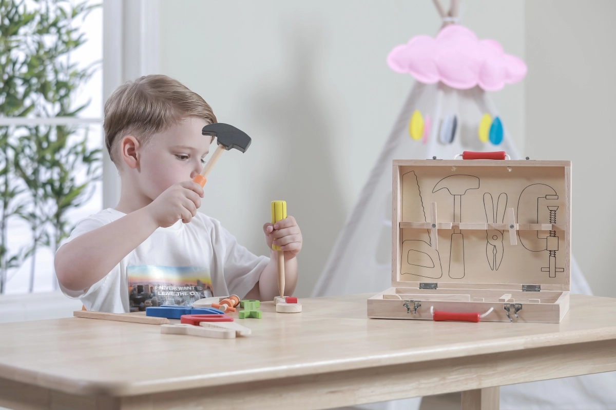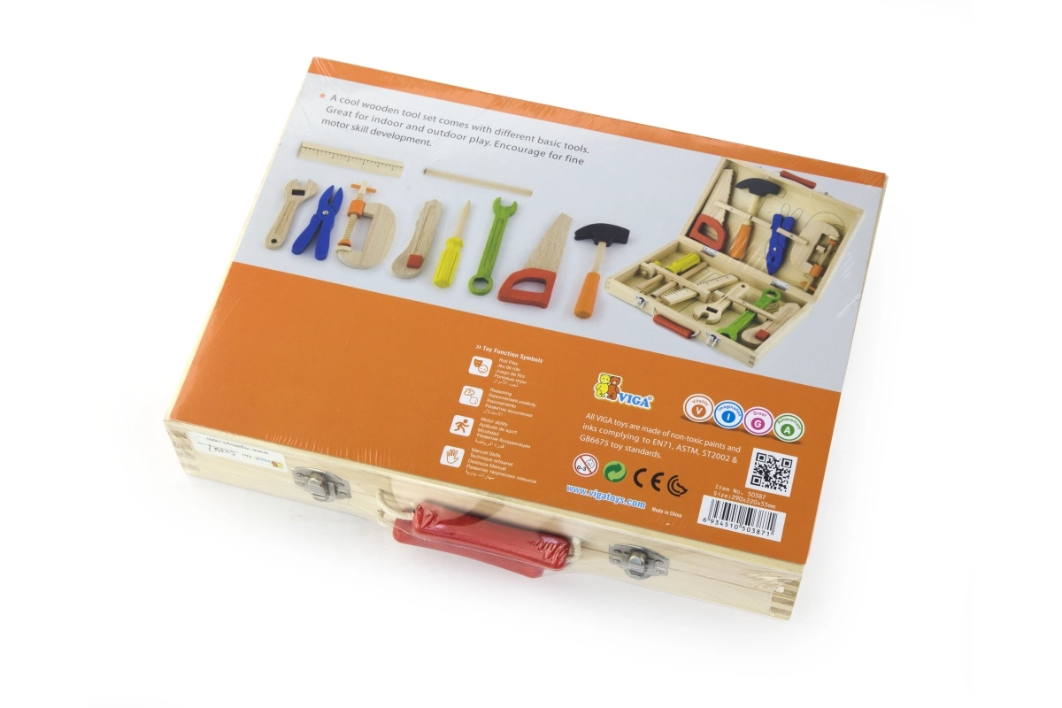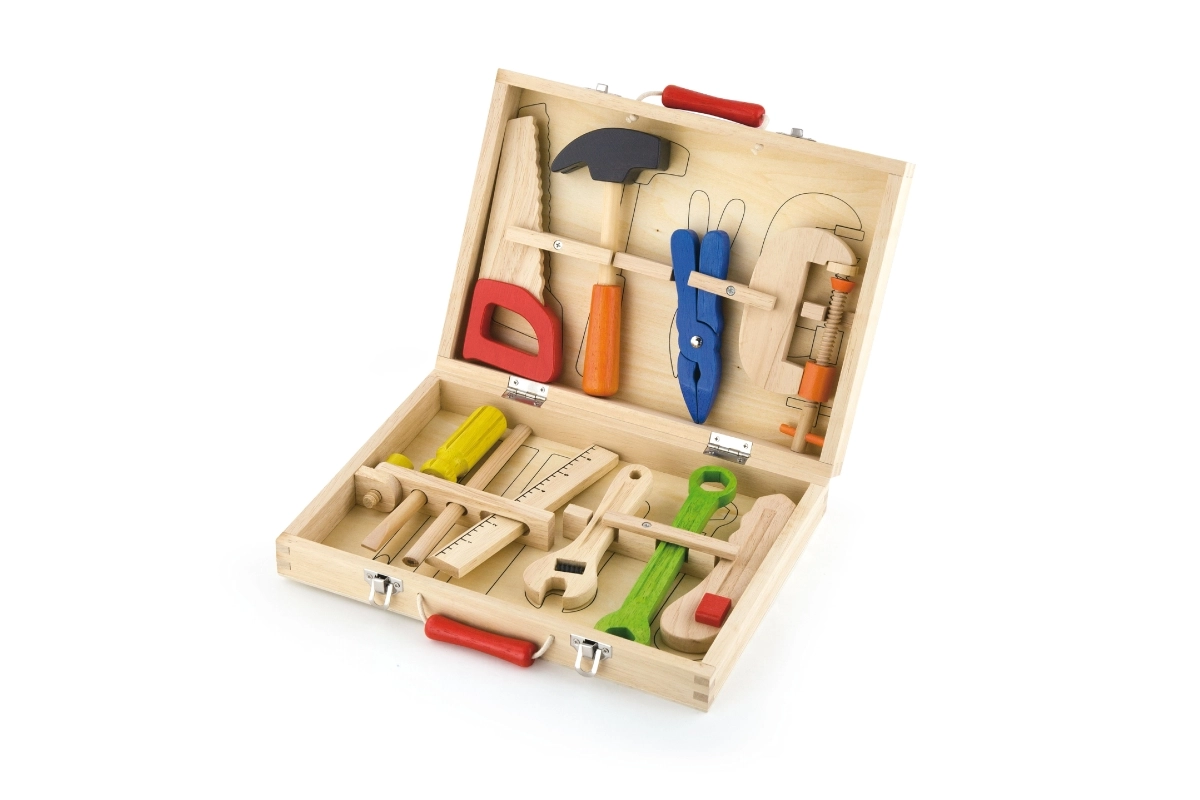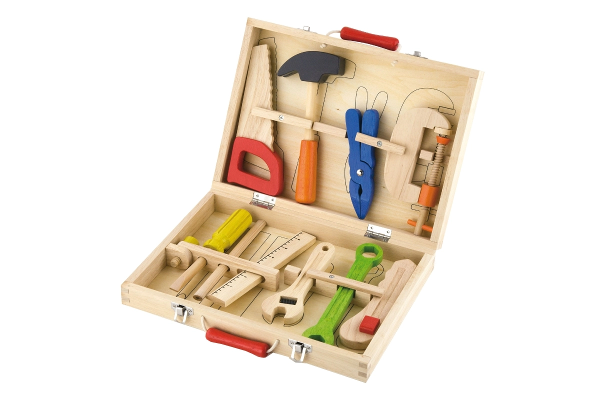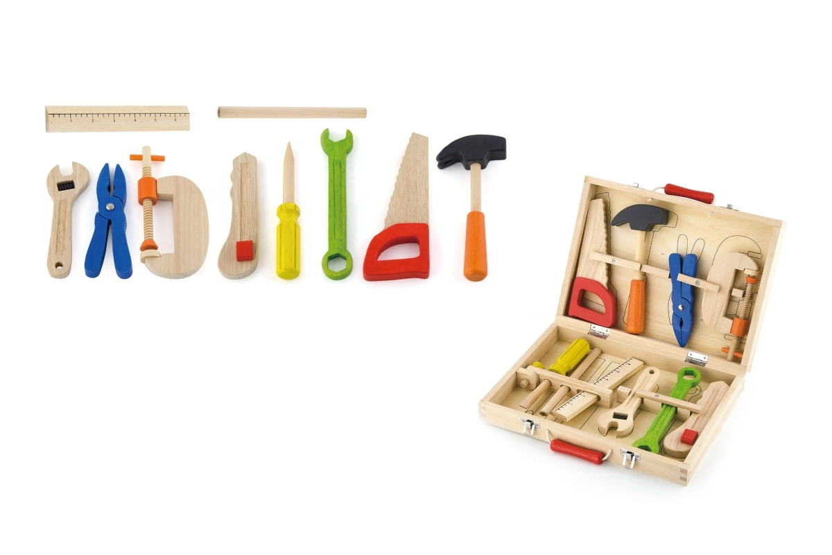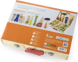 Ofrece a los niños un juego realista con herramientas de madera cuidadosamente elaboradas en un práctico maletín. El set incluye martillo, sierra, llave, destornillador y otras herramientas favoritas que ayudan a desarrollar la destreza y la imaginación. Gracias a su construcción de madera, el juguete es duradero, agradable al tacto y seguro para las manos pequeñas.