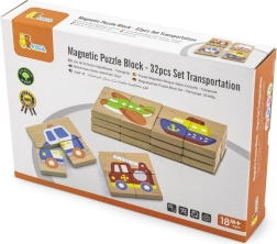 Este fascinante juguete magnético permite a los niños componer imágenes a partir de 4 bloques que, al unirse, forman un medio de transporte completo. Se pueden fijar fácilmente a una pizarra y convertirse en parte de una escena o servir como inspiración para dibujar. Madera de alta calidad y pinturas no tóxicas garantizan que el juguete sea completamente seguro para los niños.