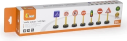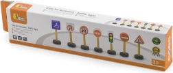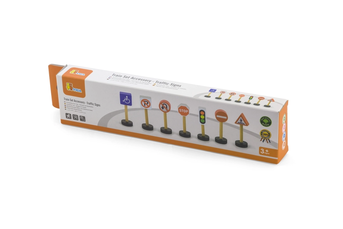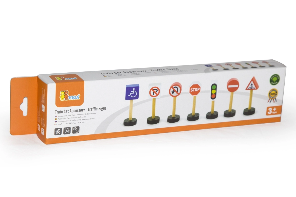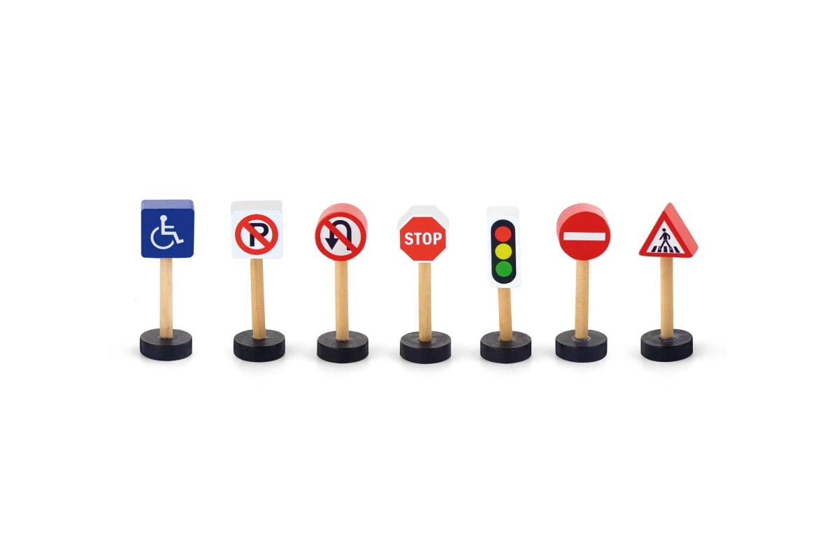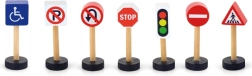 Este juego de memoria y educativo incluye 7 señales de tráfico de madera diferentes que ayudan a los niños a dominar las reglas básicas de circulación. El juguete es ideal para niños a partir de 3 años y complementa a la perfección cualquier set de construcción o circuito de trenes.
