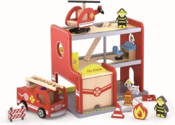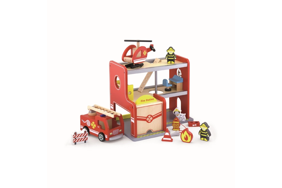 Descubre la divertida estación de bomberos de madera con abundantes accesorios para pequeños héroes a partir de 3 años. El set incluye camión de bomberos, helicóptero, figuras de bomberos, hidrante y otros complementos que fomentan la imaginación, el juego de roles y la motricidad fina. Dimensiones de la estación aprox. 35 × 28 × 25,5 cm.