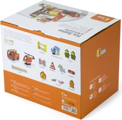 El paquete incluye todo lo que los pequeños bomberos necesitan: vehículos, figuras y accesorios temáticos. Sus dimensiones compactas permiten jugar en la mesa o en el dormitorio infantil, y el set se guarda fácilmente en la caja.